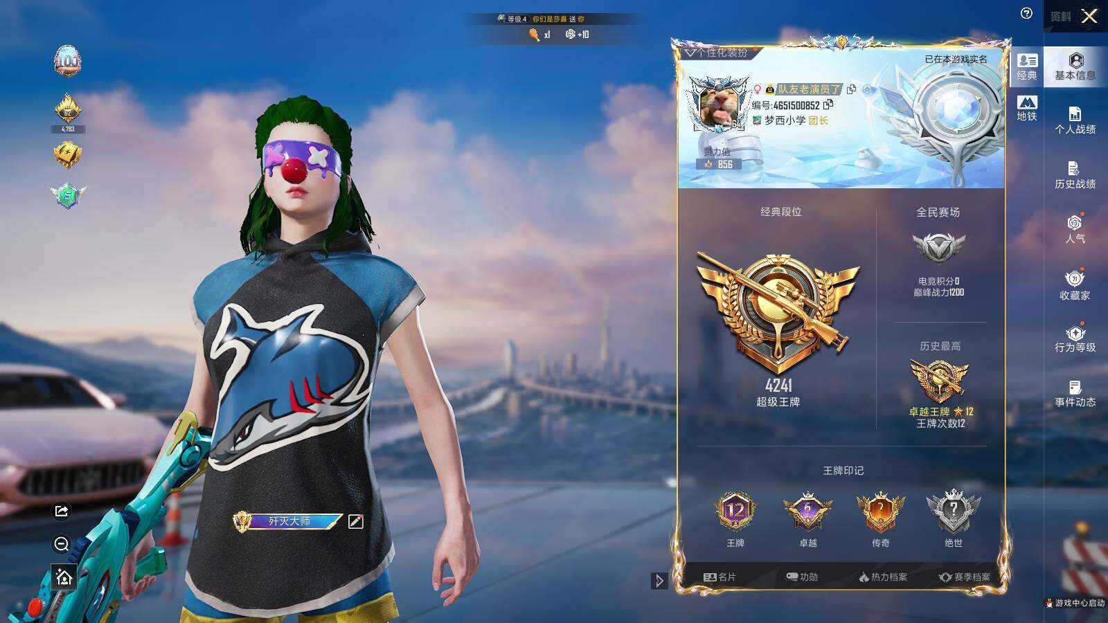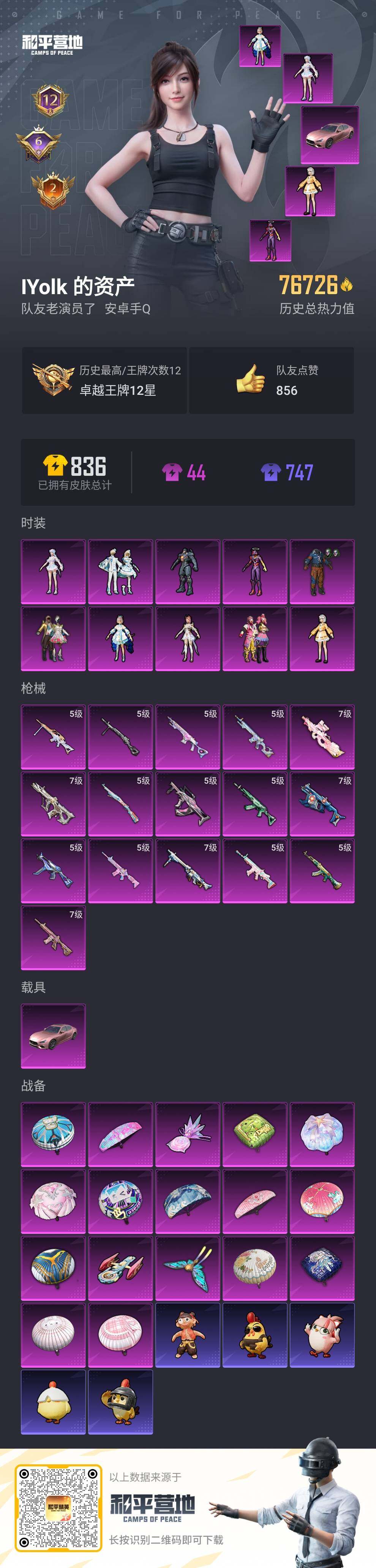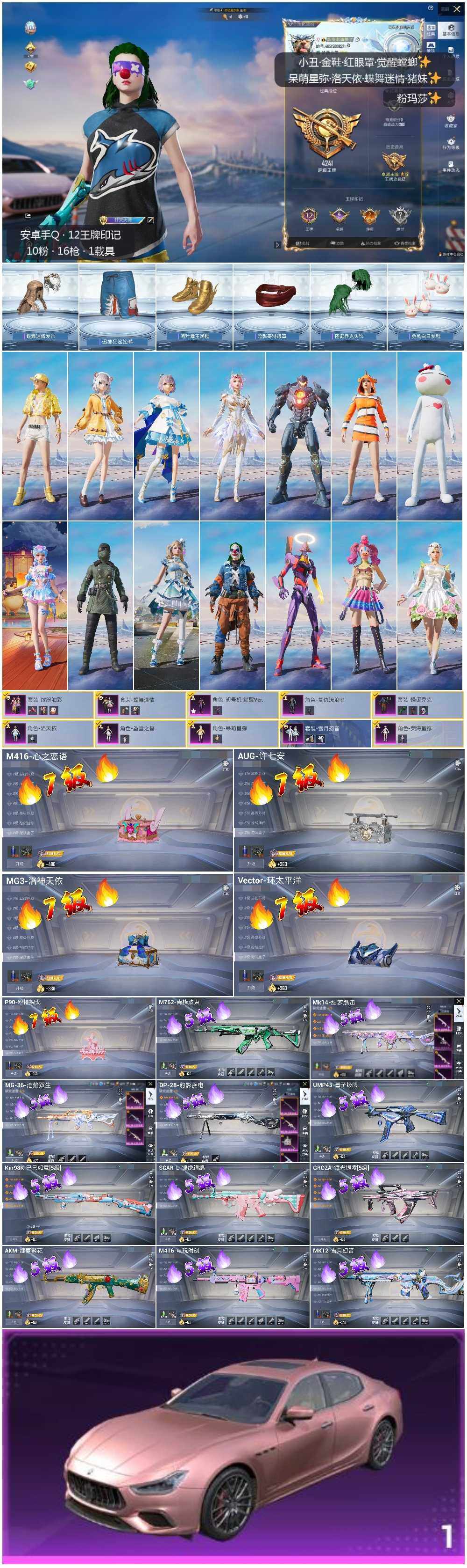 - [12202213]3粉装 10特效枪 1载具 9印记 可二次 可修改实名 优质装备:M416五爪金龙,天使彩虹糖,AKM绿萝繁花,SCAR-L-锦绣绵绵,M416电玩时刻,DP-28-千金淑猫,千金淑猫,星穹咏叹调,AKS-74U-星穹咏叹调,MK14-甜梦熊击,Kar98K-巳巳如意 热门装扮:鹰眼刺客 稀有枪皮:DP-28-豹影疾电 五级特效枪:五级M416-五爪金龙,五级Kar98K-巳巳如意,五级DP-28-豹影疾电,五级MK14-甜梦熊击,五级AKS-74U-星穹咏叹调,五级M416-电玩时刻,五级SCAR-L-锦绣绵绵,五级AKM-绿萝繁花 四级特效枪:四级DP-28-千金淑猫 紫色装扮:SS30特训套装,SS31特训套装,云朵鹅,彩虹兔,雪绒豹,SS33特训套装,旭日情侣,SS21特训,顶瓜瓜,冷焰舞者,北国孤狼,坚韧舞者,夏日音浪,夜莺强袭者,幻世战舞者,幻影武者,冰川特警,SS2特训,SS3特训,SS5特训,天籁歌者,SS17特训,SS14特训,SS20特训,怒火燎原,SS18特训,浓情蜜辣,飞驰魅影,音速流光,SS19特训,战地菁英,飞行日记,骑行爱好者,魅力单车,黄色伏地魔,黄色运动,黑色伏地魔,龙的传人,龙魂突击队,蝶变,跃动心情,边境牛仔,都市漫游者,野性战魂,长空猛禽,雨林探路者,雪山精英,西部牛仔,熔岩游骑兵连帽夹克,蓝海鲸歌,街头潮人,海滨突袭者,湖蓝色名流,灰色格斗者,灼焰舞者,热血青春,牛气冲天,牛气满满,海岛探路者,探宝勇士,格斗先锋,血色贵族,红色运动,绮丽涂鸦,缤纷果语,耀眼新星,蓝彩潮人,蓝色守护者,蓝色运动,竞技勇士朋克,猛禽,甜蜜告白,空岛之星,疯狂小兔子,白色伏地魔,破晓战魂,SS29特训,SS28特训,鱼渊荷华,燕燕于飞,巳巳如意,森林游猎者,海琴烟,风玲,智谋强哥,异域银装,青团波波,糖糖葫芦,竞技名士,深海梦境,惊鸿侠骨,神气柴柴,SS24特训(SS24特训套装),SS25特训,锦衣飞扬,SS27特训,焰鹰斗篷,幻羽潜行,Alan Walker,湖雨初晴,情公主,浪漫天命,SS26特训,SS7特训,SS9特训,SS6特训,SS12特训,SS13特训,SS11特训,耀粉歌者,粉甜马卡龙,大橘大利,星影赞美诗,SS32特训服(SS32特训套装),蓝冰羽,绯格组合,紫幽梦,恋语绒绒,漫步者,冰冻风暴 优质战备:精灵梦叶罗丽降落伞,莲影