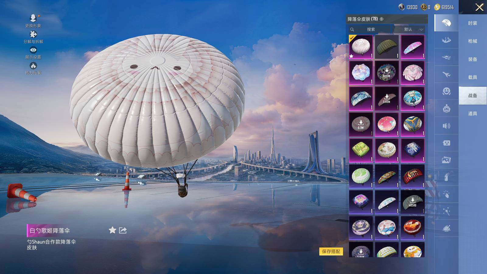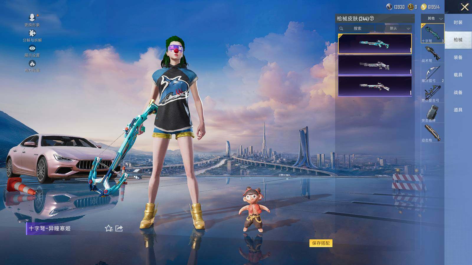 AKM-绿萝繁花,M416-心之恋语,M416-电玩时刻,GROZA-镜光银凌,AUG-许七安,M762-青锋波束,UMP45-量子极限,Vector-环太平洋,P90-粉樱探戈,Kar98K-巳巳如意,MK12-雪月幻音,MG3-洛神天依