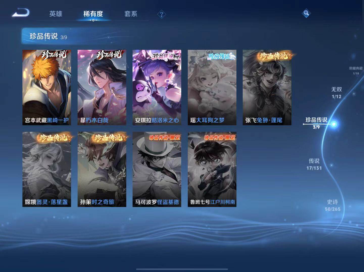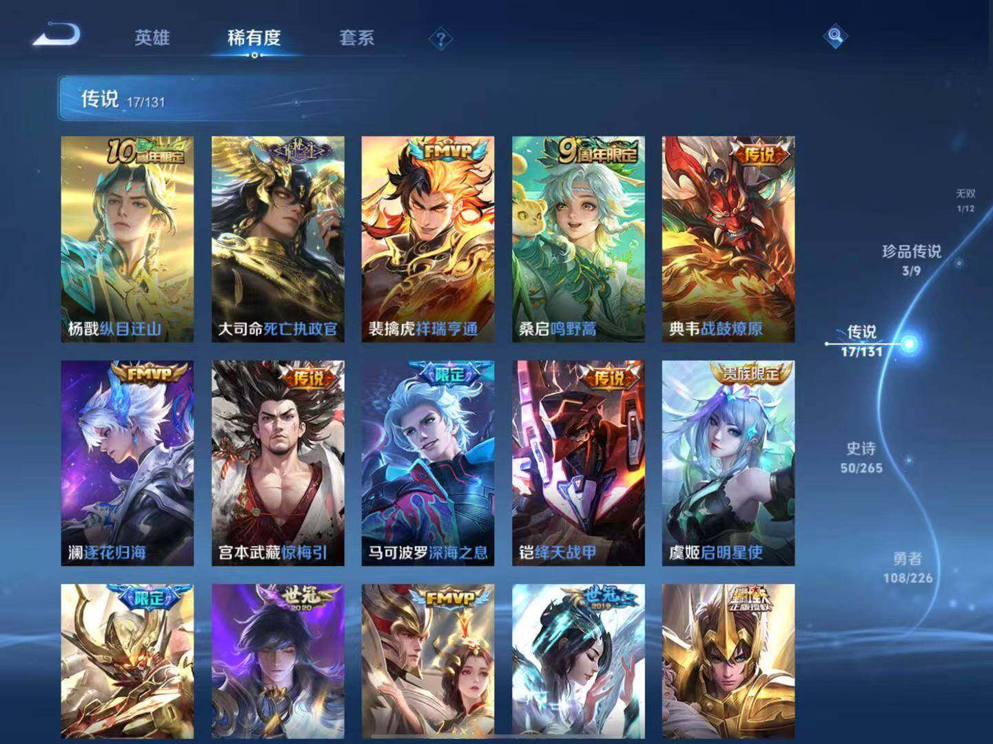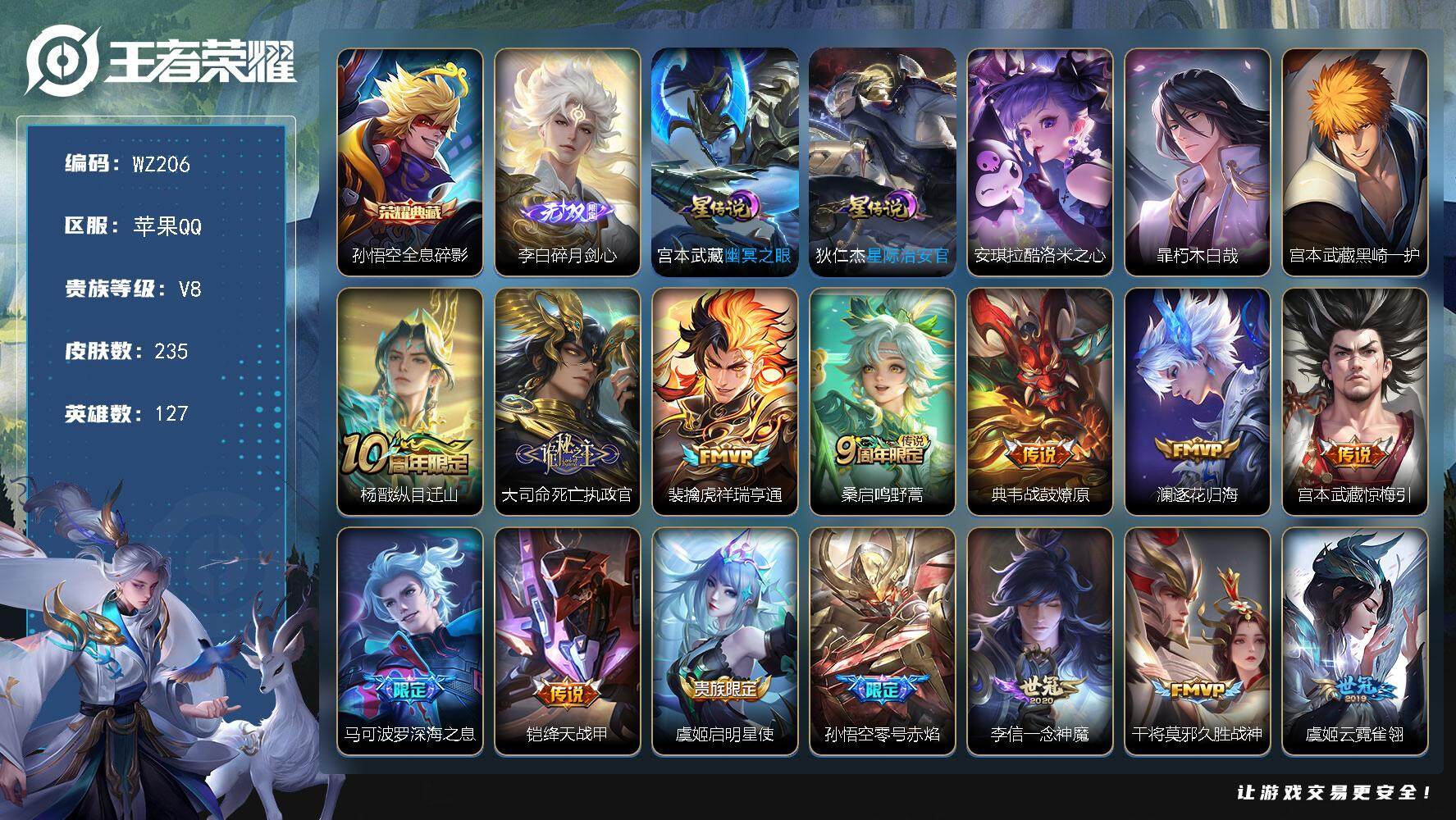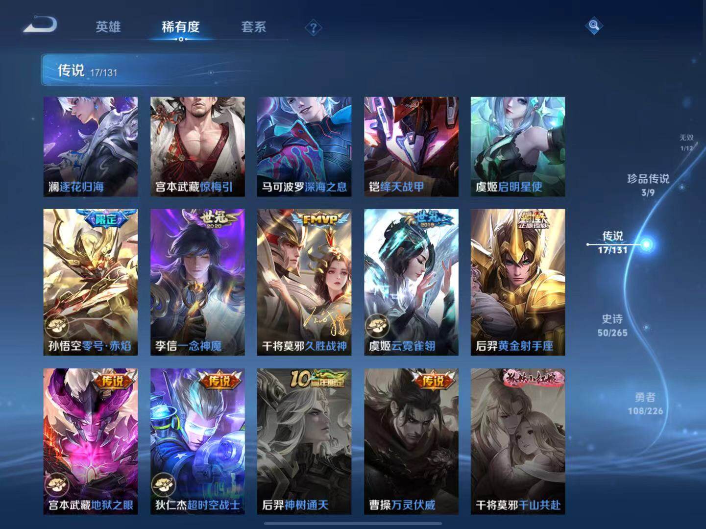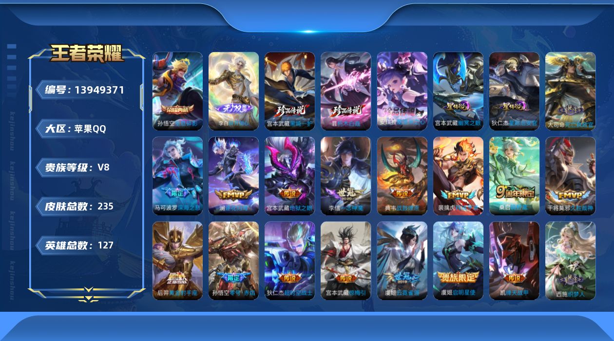 [13949371]金标大司命,苹果Q-V8-235皮肤-1典藏-1无双-3珍品传说-17传说-50史诗