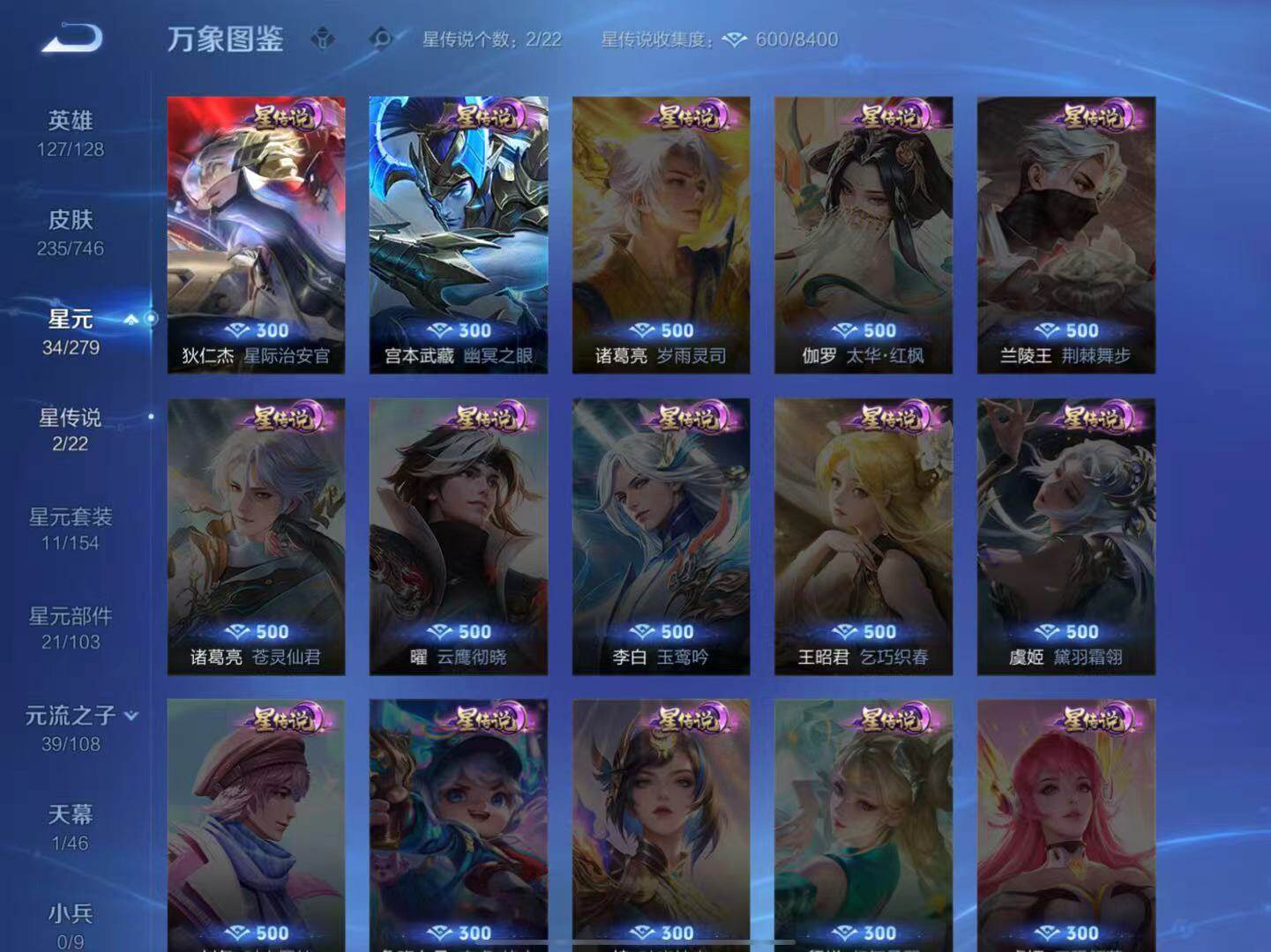 - [11553781]V10 4典藏 1无双 71传说 126英雄 455皮肤 典藏英雄武则天 可修改实名 优质装备:鸣剑·曳影,全息碎影(猴子典藏),九霄神辉(木兰典藏),银白咏叹调(倪克斯侍卫),碎月剑心(李白无双),黄金狮子座,黄金射手座,冠军飞将,云鹰飞将(小将军),绛天战甲(鸡嘴战神),黄金白羊座,久胜战神,炽阳神光,一念神魔,云霓雀翎,末日机甲-孙尚香(绿蚂蚱),地狱火,仲夏夜之梦(大飞蛾),音你心动-小乔,零号·赤焰,海洋之心,地狱之眼,音你心动-周瑜,胖达荣荣,李逍遥,时之恋人-刘备(电焊工),淬星耀世,超时空战士-狄仁杰,末日机甲-孙策,花朝如约(花篮子),挚爱之约,无双飞将,碎云,神器·狴犴令,山海·炽霜斩(李信年限),山海·琳琅生(小乔年限),山海·苍雷引(电光曜子),燃星之曲,画中仙,追逃游戏(安琪拉),电玩·雷克斯,小动物乐团,霜月吟,澜逐花归海,艾琳觅芳踪,金乌负日,黄金天蝎座,玄雷天君 传说皮:乘龙·问璇玑(孙尚香年限),乘龙·铭钟鼎(赵云年限),乘龙·淬吴钩(孙策年限),貂蝉曦玄引,吕布曦玄引,落雪白狼,幻光神枪 珍宝阁皮:女武神,玩趣恶龙 限定皮:愿照·九州拓(澜年限),愿照·千秋盛(女娲年限),鸣野蒿,至尊宝,白虎志(电光耗子),凤凰于飞,太华(伽罗年限),异界灵契(白毛香),星穹之声,绯月行,时之彼端,白晶晶,时雨天司(水龙头),神威(电光马子),飞衡(韩信年限),玄嵩(庄周年限),山海·碧波行(瑶年限),无限倾心-项羽,诗剑行,无限倾心-虞姬,齐天大圣,怒海麟威,降魔,五谷丰年,青龙志(铠年限),冰锋战神,幽恒(沐浴露),武圣,天狼运算者,游园惊梦,御风骁将(吕布年限),天狼狩猎者,龙胆,逐梦之星,烈魂,岱宗(典韦年限),虎魄,奔雷神使(牛魔年限),祈雪灵祝(雪兔子),天狼绘梦者,李小龙,朱雀志(守约年限),永曜之星,如梦令-嫦娥,如梦令-后羿,霸王别姬-项羽,霸王别姬-虞姬,默契交锋-兰陵王,默契交锋-花木兰,孙行者,一生所爱,大圣娶亲,天魔缭乱,冰霜恋舞曲,云端筑梦师,神奇女侠,枫霜尽,时之奇旅-妲己,神器·万象笔,梦圆繁星,山海·玄木吟(马可年限) 史诗皮:星界战将,灵蛊蚀心,龙之律动,石田雨龙,茶境仙,海诺心动手记,东方月初,芈月浮光幕影,上官婉儿群星魔术团,奇遇星旅,曹操夜都魔契,超元猎域,乘龙·聚宝船(安琪拉年限),乘龙·忆丹青(大