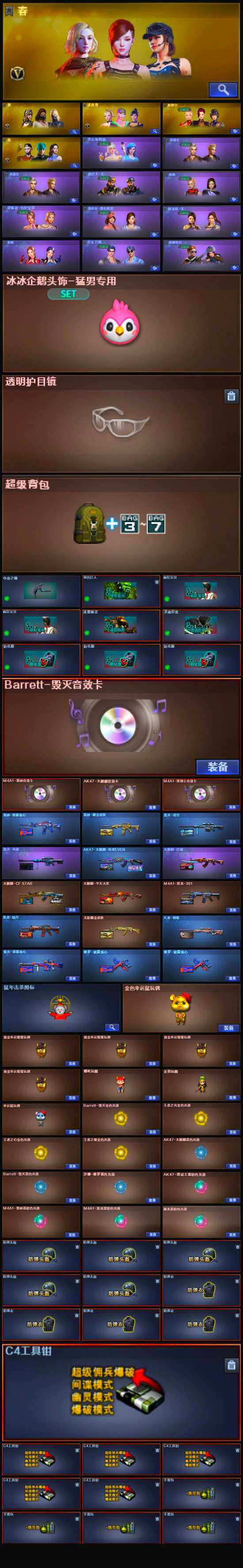【音效卡】:AK47-火麒麟音效卡,M4A1-雷神音效卡,M4A1-黑骑士音效卡,Barrett-毁灭音效卡