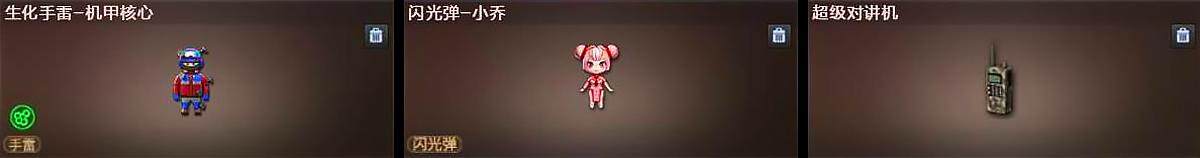 【人偶武器】:COP-白鲨,炼狱-迷你小钢,迷你律动酷熊,斯泰尔-蝴蝶,AWM-灵狐-15周年嘉年华*2,迷你生化手雷*3,生化手雷-机甲核心*2,闪光弹-小乔,灵狐娃娃手雷