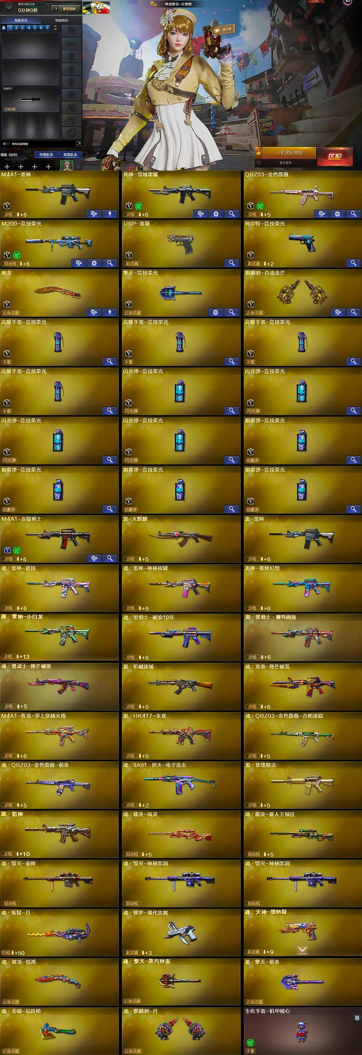 【英雄级武器】:M4A1-雷神,死神-雪域霜狐,QBZ03-金色蔷薇,M200-竞技荣光,USP-雷暴,柯尔特-竞技荣光,屠龙,擎天-竞技荣光,麒麟刺-百战金芒,高爆手雷-竞技荣光*4,闪光弹-竞技荣光*4,烟雾弹-竞技荣光*4,M4A1-赤狱骑士