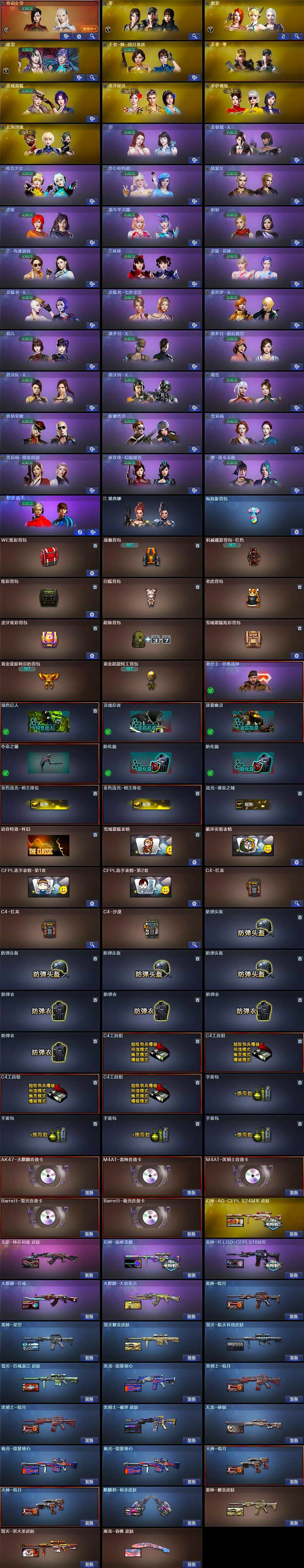 【皮肤】:幻神-巅峰荣耀,幻神-AG-CFPL S24冠军 皮肤,雷神-暗月,雷神-星空,雷神-耀金皮肤,雷神-R.LGD-CFPLS18冠军,火麒麟-百城,火麒麟-大唐荣光,毁灭耀金皮肤,毁灭-黑大圣皮肤,毁灭-航天科技皮肤,毁灭-百城浙江 皮肤,黑龙-能量核心,黑骑士-暗月*2,黑骑士-破界 皮肤,无影-神兵利器 皮肤,天龙-秘银,极光-能量核心*2,天神-暗月*2,屠龙-春桃 皮肤,轻型军用手斧-再燃火线,龙啸-青青莓果 皮肤,麒麟刺-萌杀皮肤