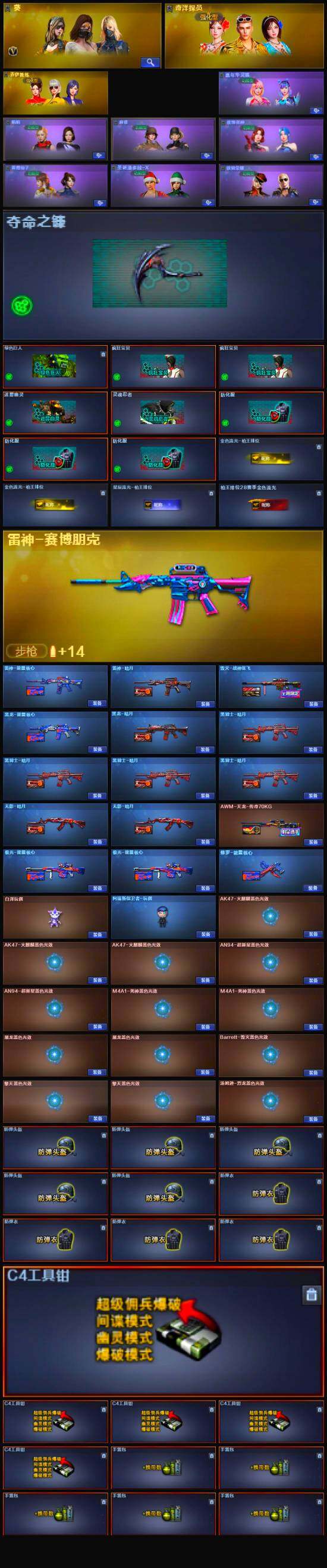 【道具】:云山科技背包,亚洲杯纪念炫彩背包,奇洋探员-海龟背包,炫彩背包,百战金芒炫彩背包,女皇终结者-魔龙之吻,救世主-黑桃战神,绿色巨人,灵魂忍者,迷雾幽灵,夺命之镰,防化服*3,金色流光-枪王排位*2,星辰流光-枪王排位,枪王排位28赛季金色流光,枪王排位29赛季金色流光,语音特效-盛典烟火,萌萌小葵表情,C4-红龙,防弹头盔*5,防弹衣*4,C4工具钳*5,手雷包*5