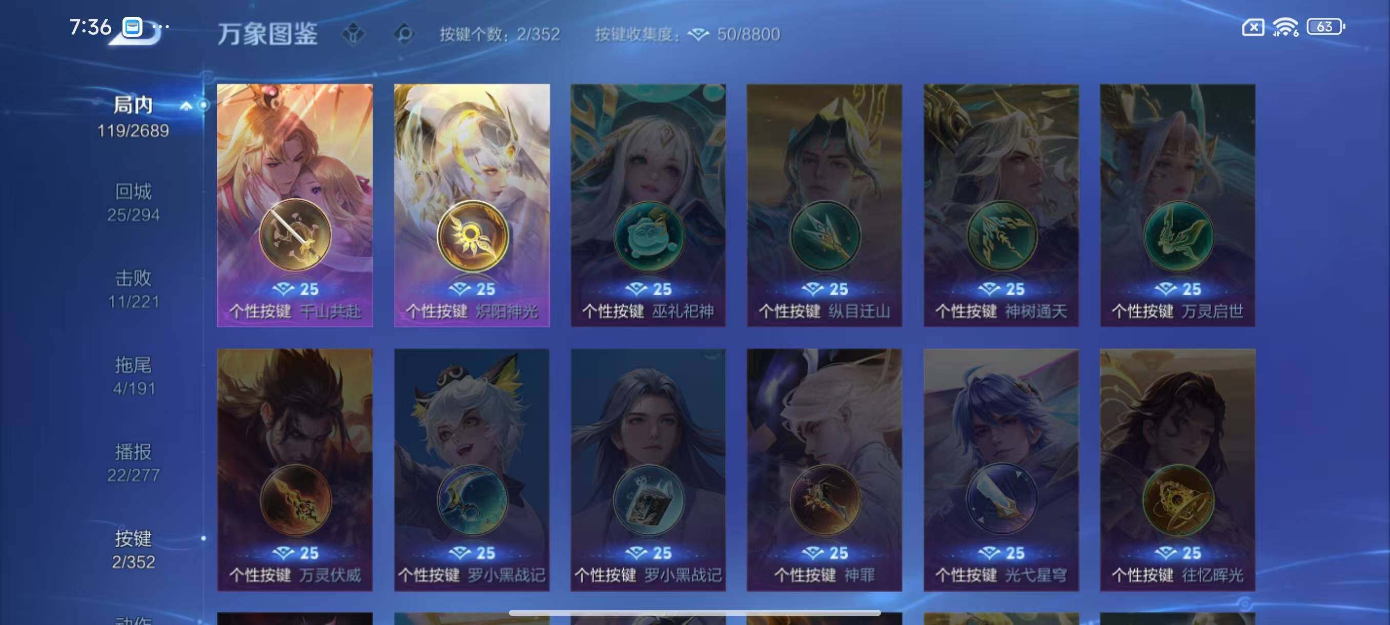 - [13865577]安卓Q-V7-最强王者段位-123英雄-280皮肤-1典藏-0珍品无双-0无双-0珍品传说-11传说-56史诗 【荣耀典藏】:李白鸣剑曳影 【传说皮肤】:桑启鸣野蒿,孙悟空齐天大圣,曜山海苍雷引,李信山海炽霜斩,马超无双飞将,诸葛亮时雨天司,貂蝉猫影幻舞,干将莫邪久胜战神,后羿黄金射手座,诸葛亮武陵仙君,宫本武藏地狱之眼 【限定皮肤】:白起狰,狄仁杰阴阳师,赵云皇家上将,孙尚香蔷薇恋人,鲁班七号狮舞东方,钟无艳超时空战士,扁鹊奇幻香踪,白起夜都怪侠,芈月重明,芈月幻夜卜梦,元歌无心,夏侯惇朔风刀,夏侯惇匿光决锋者,甄姬落雪兰心,曹操烛龙,典韦穷奇,狄仁杰魔术师,狄仁杰万华元夜,达摩沙漠行僧,项羽海滩派对,老夫子醍醐杖,王昭君午后时光,兰陵王金庭之子,孙悟空至尊宝,孙悟空齐天大圣,牛魔御旌,李元芳银河之约,李元芳云中旅人,钟馗神迹守卫,钟馗驱傩正仪,杨戬潮玩骑兵,雅典娜黎明之约,太乙真人饕餮,鬼谷子原初探秘者,鬼谷子五谷丰年,诸葛亮武陵仙君,诸葛亮时雨天司,黄忠火炮绅士,苏烈千军破阵,弈星混沌棋,梦奇顽趣,沈梦溪星空之诺,沈梦溪大漠名商,明世隐疑决卦,明世隐吟游魔法,裴擒虎擒涛扼浪,狂铁御狮,狂铁电玩高手,米莱狄御霄,李信山海炽霜斩,盾山御銮,上官婉儿梁祝,嫦娥暖冬兔眠,曜山海苍雷引,西施玲珑珍味,鲁班大师探海日志,桑启海盐诗旅,暃星界游侠,戈娅驭风魔法,艾琳女武神,张良古海寻踪,蒙恬荣光圣徽,高渐离燃音魔法,妲己灵卜魔法,鬼谷子天穹祈灯,伽罗琥珀纪元,沈梦溪龙舞盛年,鲁班七号蔬乡物语,李元芳蔬乡物语,刘邦剑破天穹,程咬金群星魔术团 【年限皮肤】:诸葛亮时雨天司,李信山海炽霜斩,曜山海苍雷引 【赛季限定】:白起狰,芈月重明,夏侯惇朔风刀,曹操烛龙,典韦穷奇,狄仁杰万华元夜,达摩沙漠行僧,老夫子醍醐杖,兰陵王金庭之子,张良古海寻踪,牛魔御旌,李元芳云中旅人,钟馗驱傩正仪,雅典娜黎明之约,太乙真人饕餮,鬼谷子原初探秘者,苏烈千军破阵,弈星混沌棋,梦奇顽趣,沈梦溪大漠名商,明世隐疑决卦,裴擒虎擒涛扼浪,狂铁御狮,米莱狄御霄,盾山御銮,鲁班大师探海日志,桑启海盐诗旅,鬼谷子天穹祈灯,蒙恬荣光圣徽,刘邦剑破天穹 【战令限定】:鲁班七号狮舞东方,钟无艳超时空战士,扁鹊奇幻香踪,白起夜都怪侠,芈月幻夜卜梦,甄姬落雪兰心,王昭君午后时光,李元芳银河之约,钟馗神迹守卫,杨戬潮玩骑兵,