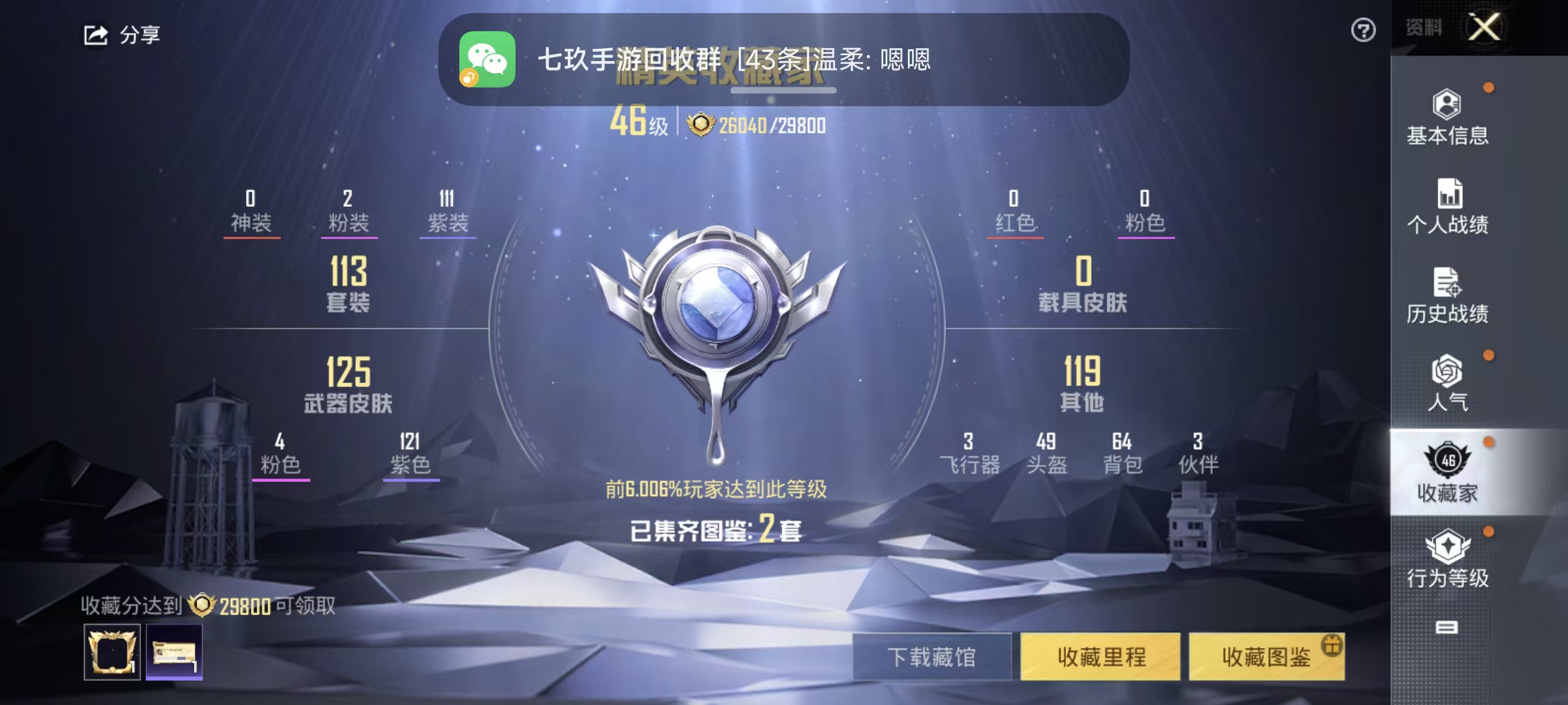 - PX_2102603-可二次 等级63 115套装 164枪皮 13王牌印记 3卓越 热力值48458 5粉 4特效枪 满级M416-心之恋语 满级P90-能量风暴 满级Kar98K-巳巳如意 烟云彩露 角色-冰公主 角色-情公主