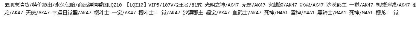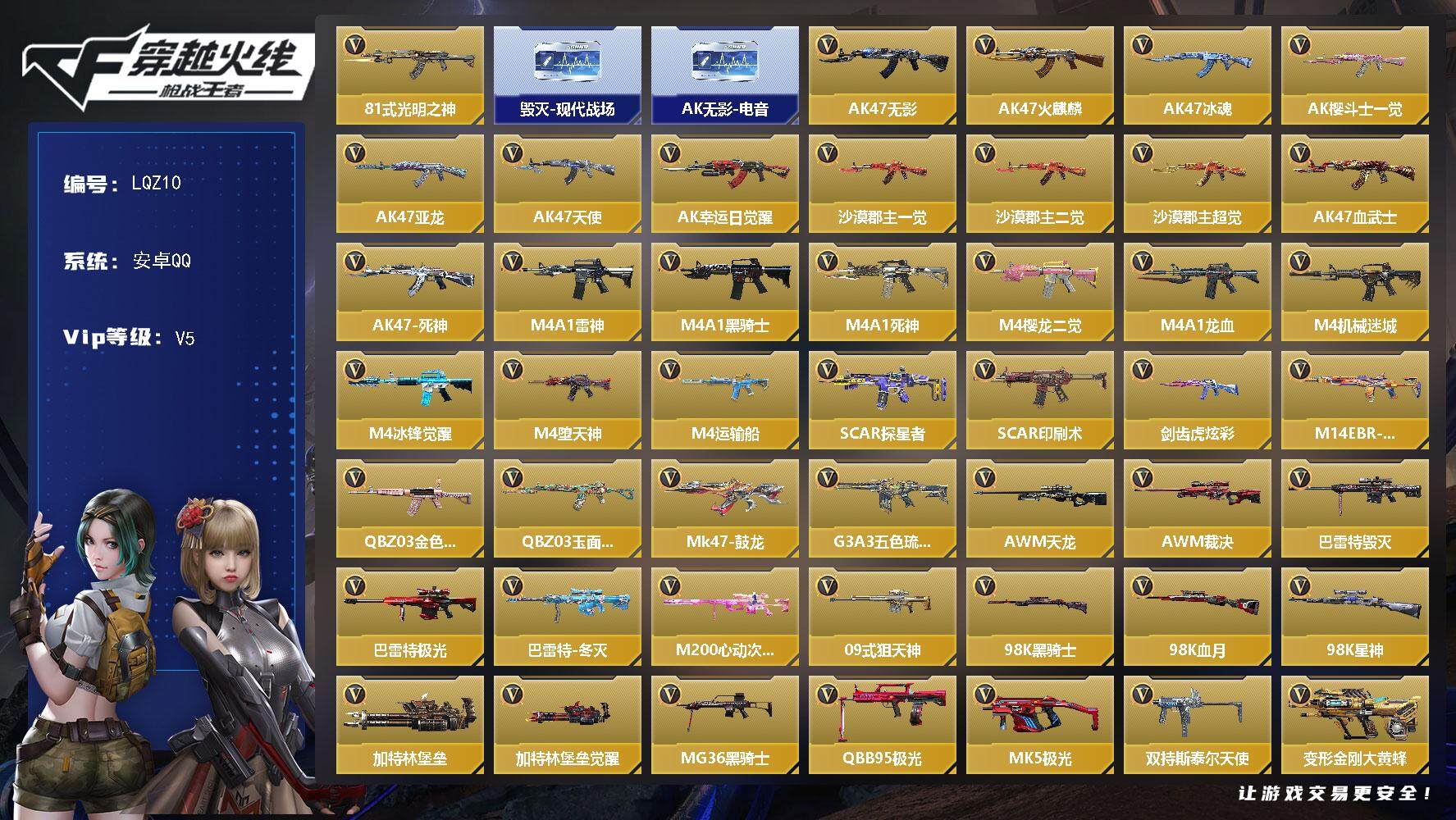 [13963128]暑期末清货/特价急出/永久包赔/商品详情看图LQZ10-【LQZ10】VIP5/107V/2王者/81式-光明之神/AK47-无影/AK47-火麒麟/AK47-冰魂/AK47-沙漠郡主-一觉/AK47-机械迷城/AK47-亚龙/AK47-天使/AK47-幸运日觉醒/AK47-樱斗士-一觉/AK47-樱斗士-二觉/AK47-沙漠郡主-超觉/AK47-血武士/AK47-死神/M4A1-雷神/M4A1-黑骑士/M4A1-死神/M4A1-樱龙·二觉