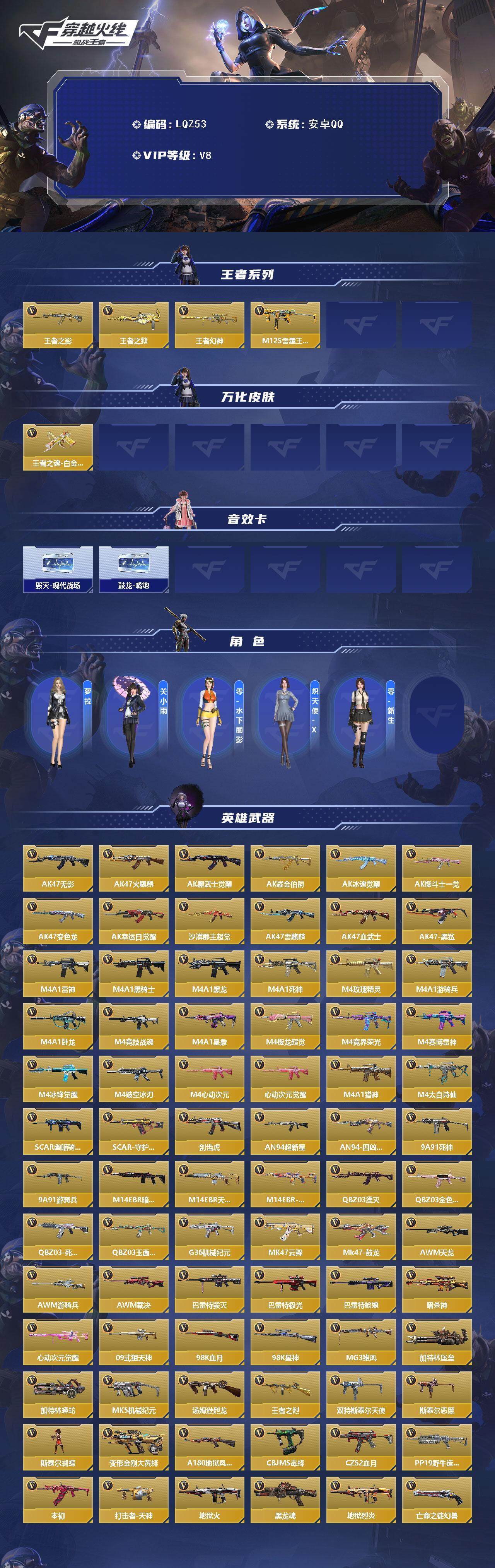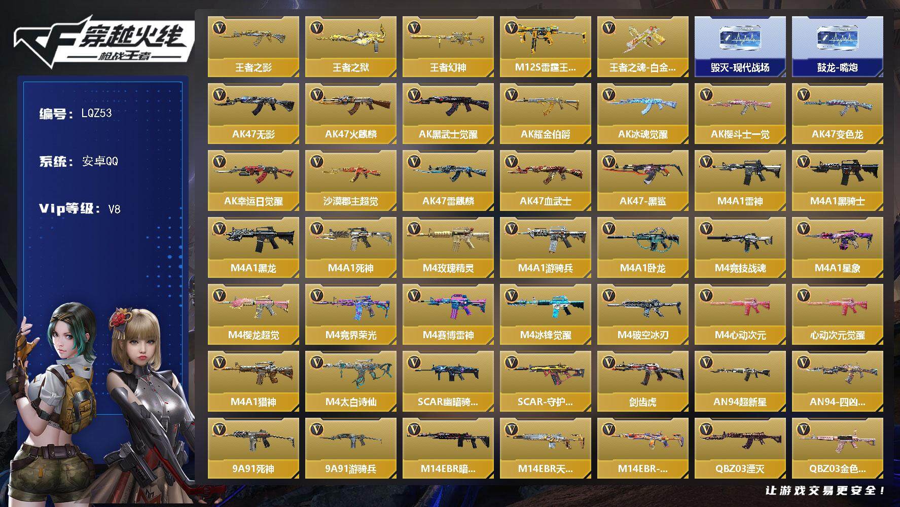 [13963357]可秒换绑 VIP8/157V/6王者 详情看图 王者之影,王者之狱,王者幻神,M12S-雷霆王者,M4A1-破空冰刃,M4A1-心动次元,M4A1-心动次元觉醒,AK47-黑鲨,屠龙,弑魔者,尼泊尔-火麒麟,马来剑-毁灭,神罚战斧,QBZ03-死神,麒麟刺,加特林-堡垒,AK47-樱斗士-一觉,M14EBR-暗夜,SCAR-幽暗骑士,M4A1-卧龙,QBZ03-金色蔷薇,斩魔剑-天使,擎天觉醒,王者之烈,沙鹰-修罗,沙鹰-飞电,星芒,血阳,战斧-无影,血月,沙鹰-无影,SCAR-守护者觉醒,PP19野牛-造纸术,VEPR12-本初,打击者-天神,M1216-霸王龙,Mk47-鼓龙,M4A1-猎神,秋逸,98K-星神,M14EBR-拂影,QBZ03-玉面羞花,沙鹰-神兵修罗,沙鹰-修罗-铁骑,手斧-机械迷城,唐刀-大唐荣耀,USP-机械迷城,AN94-四凶觉醒,QCW05-变形金刚·大黄蜂,M1216-血月,CZS2-血月,KSG-极光,CZ75-穷奇,M4A1-樱龙·超觉,AK47-冰魂觉醒,M4A1-竞技战魂,M4A1-星象,AK47-耀金伯爵,M4A1-雷神,AK47-无影,M4A1-黑骑士,M4A1-黑龙,剑齿虎,M4A1-死神,AK47-黑武士觉醒,M4A1-玫瑰精灵,9A91-死神,M4A1-游骑兵,QBZ03-湮灭,AN94-超新星,AK47-变色龙,AK47-幸运日觉醒,AK47-雷麒麟,M4A1-赛博雷神,G36-机械纪元,AK47-血武士,M4A1-冰锋觉醒,MK47-云舞,9A91-游骑兵,M14EBR-天神,M4A1-竞界荣光,AK47-沙漠郡主-超觉,AK47-火麒麟,98K-血月,地狱火,黑龙魂,地狱烈炎,亡命之徒-幻兽,汤姆逊-烈龙,双持斯泰尔-天使,MK5-机械纪元,M200-心动次元觉醒,AWM-裁决,09式狙-天神,AWM-游骑兵,巴雷特-枪娘,暗杀神,斯泰尔-恶魔,A180-地狱凤凰,斯泰尔-蝴蝶,MG3-雏凤,加特林-蟒蛇,AWM-天龙,巴雷特-毁灭,巴雷特-极光,KSG-孟获,M4A1-太白诗仙,CBJ-MS-毒蜂,雷霆,寒霜烈龙,关小雨,零-水下丽影,萝拉,炽天使-X,零-新生,王者之魂-白金血钻,MK47-鼓龙-嘴炮,巴雷特-毁灭-现代战场