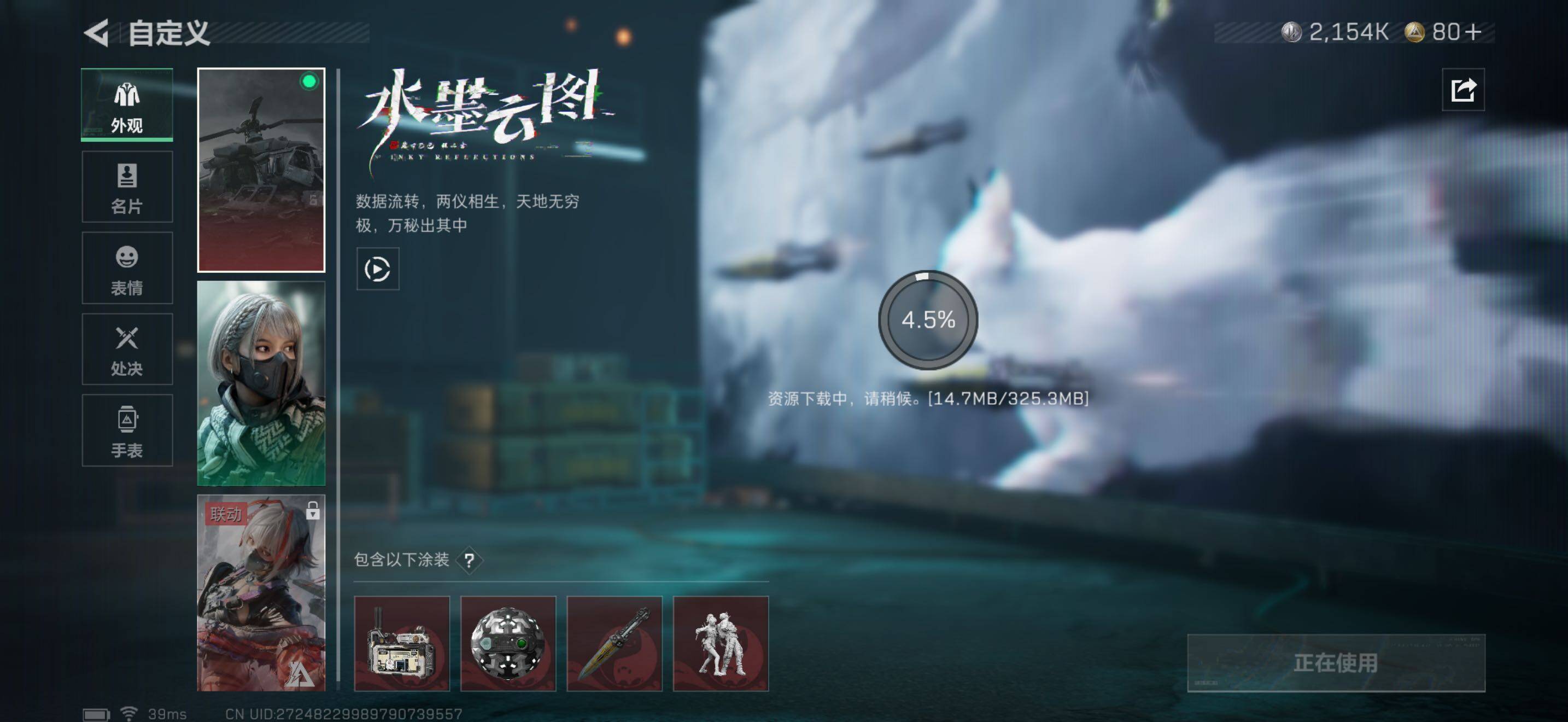 [13963754]等级:23 总资产:20.9M 哈弗币:2154 流动资产:18.8M【干员外观】:骇爪-水墨云图
