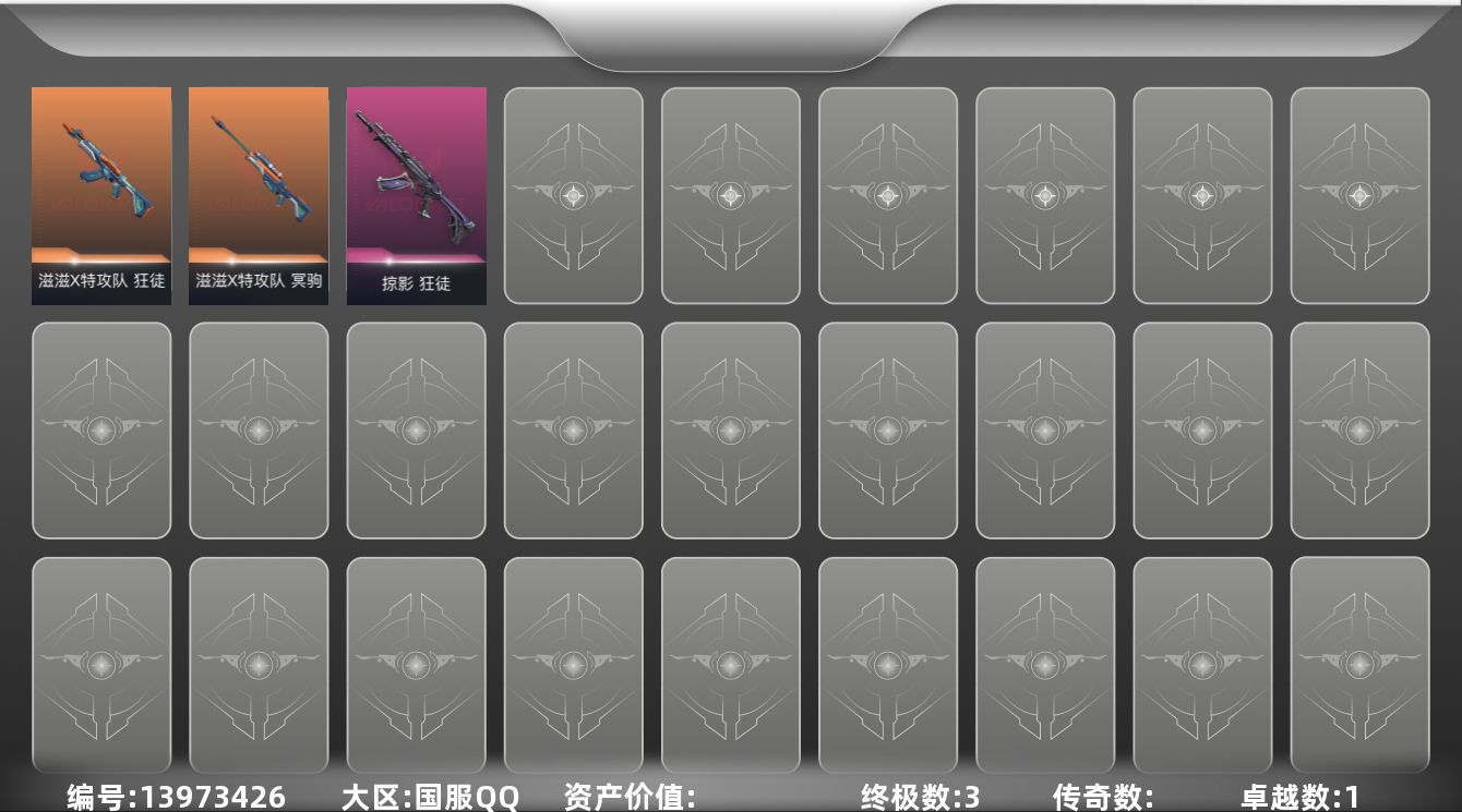 - [12230943]V10 8王者武器 305英雄武器 11英雄角色 可二次 可修改实名 优质装备:M4A1-星象,M4A1-雷霆王者,AK47-奉先,王者之竞,王者之城,M4A1-七色宝葫,M4A1-仲达,M4A1-游骑兵,王者之戮,王者之势 v武器:M4A1-太白诗仙,M4A1-九尾狐-九尾狐,SCAR-幽暗骑士,M4A1-玫瑰精灵,AK47-火麒麟,AK47-无影,AK47-麒麟,M4A1-死神,AK47-黑武士觉醒,AK47-沙漠领主,QBZ95-天使,AK47-游骑兵,M4A1-君威GS,AK47-策,AK47-幸运日觉醒,AK47-燎天净火,AK47-心动次元觉醒,AK47-雷麒麟,M4A1-赛博雷神,AK47-血武士,M4A1-海骑士,M4A1-黑龙钰-子涵,M4A1-武圣,AK47-冰魂觉醒,M4A1-Rush-夜袭,AK47-无影-葵,M4A1-雷神-萝拉,SCAR-文远,AK47-亚龙,AK47-孟德,M4A1-卧龙,M4A1-心动次元,M4A1-樱龙·二觉,AK47-黑鲨 王者武器:王者之圣,王者之魄-冠军珍藏,王者之心