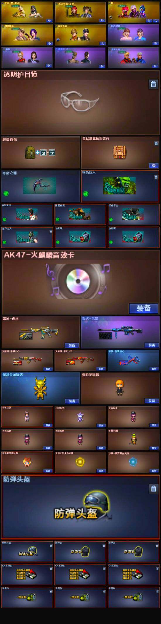 【皮肤】:雷神-虎将,火麒麟-华夏之心,火麒麟-平天大圣,毁灭-风暴,AK47-B-常胜将军-刘备,AK47-B-常胜将军-孙权*2,修罗-能量核心