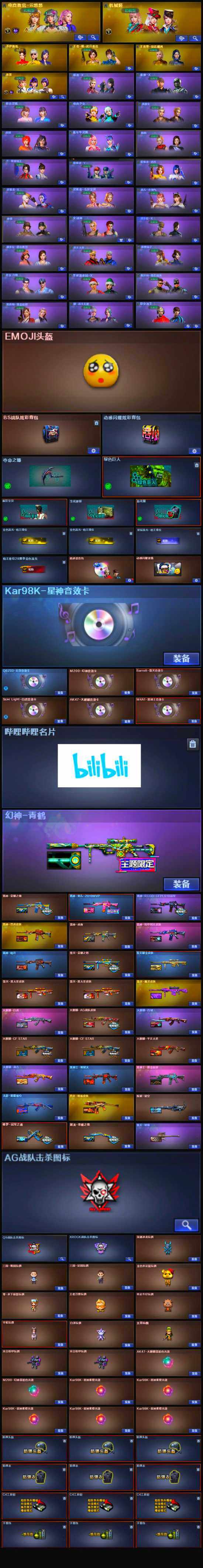 【音效卡】:M200-幻神音效卡,AK47-火麒麟音效卡,M4A1-黑骑士音效卡,Barrett-毁灭音效卡,Scar Light-白虎音效卡,绝迹语音包,Kar98K-星神音效卡,QBZ03-天罚音效卡