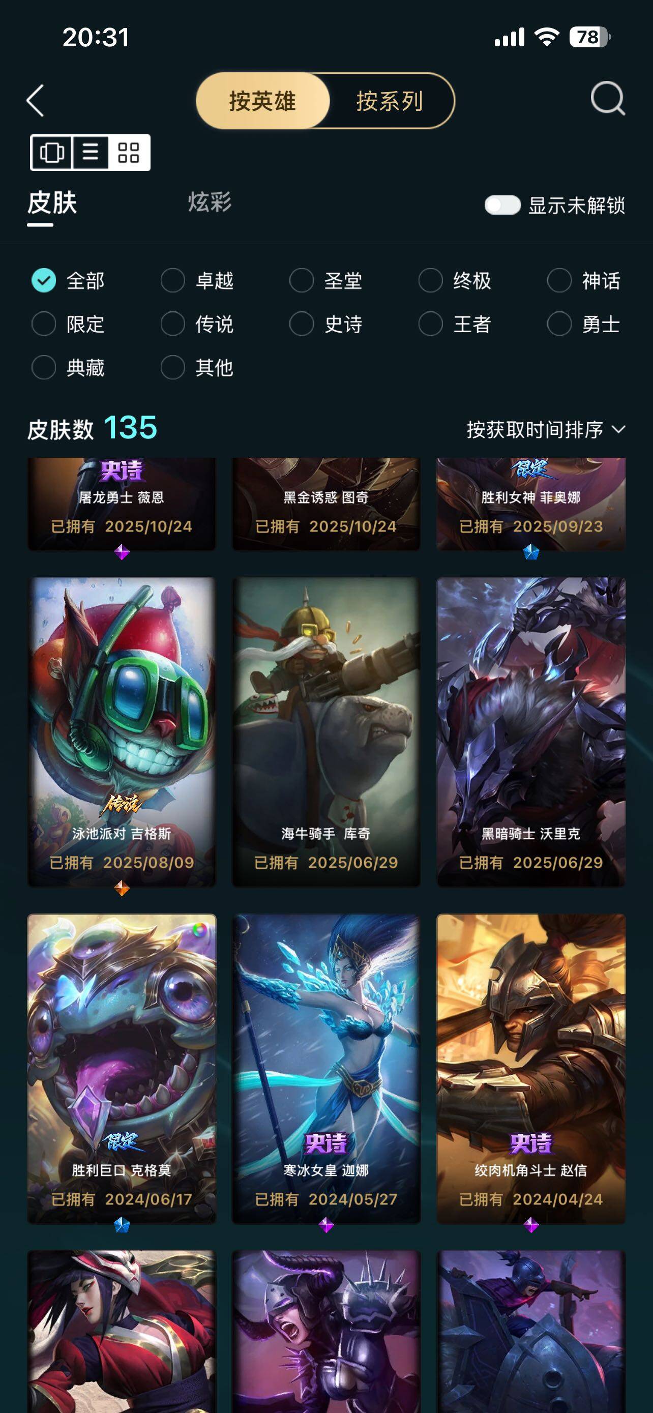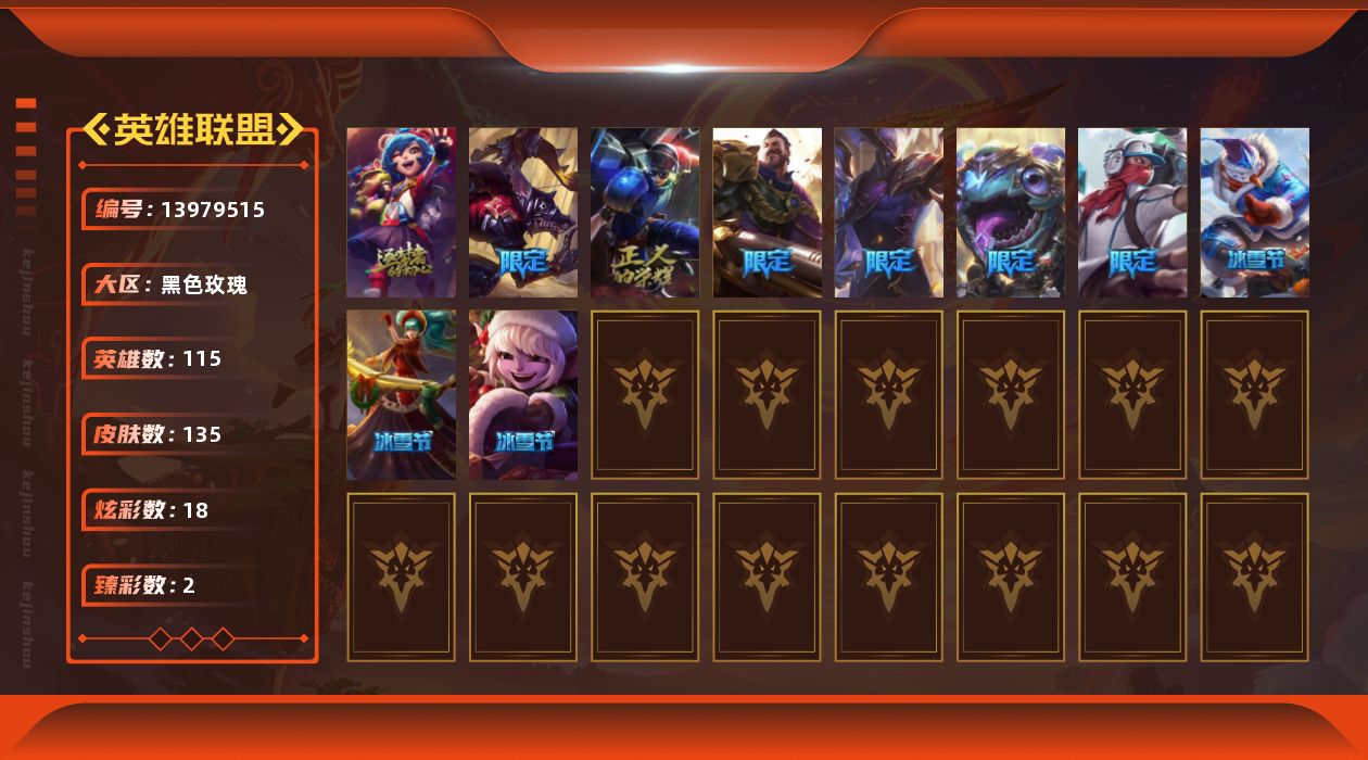 [13979515]白银段位-115英雄-135皮肤-18炫彩-1神话-11限定-12传说-34史诗