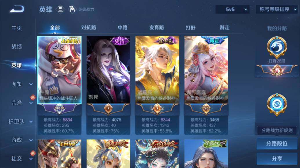 - [11523067]V7 1典藏 1珍品传说 9传说 125英雄 234皮肤 可修改实名 优质装备:鸣剑·曳影,黑崎一护,云鹰飞将(小将军),一念神魔,末日机甲-孙尚香(绿蚂蚱),地狱火,仲夏夜之梦(大飞蛾),遇见神鼓,澜逐花归海 传说皮:云诺千山 珍宝阁皮:妄想食味,优雅恋人 限定皮:逐霄战戟,鸣野蒿,至尊宝,遇见飞天,高山流水,匿光决锋者,五谷丰年,游园惊梦,梁祝,岱宗(典韦年限),李小龙 史诗皮:鸭鸭历险记-刘禅,化蝶舞,龙之律动,藏狐·褐绒,布丁狗之誓,茶境仙,谪仙醉月,决胜骁骑,超元猎域,炽弈燎原,百相守梦-黄忠,紫霞仙子,苍穹之光,黄金分割率,千年之狐,江河有灵,百解令(蒙犽),暗夜猫娘,魅语,无限星赏官,猫狗日记-大乔,乱世虎臣,节奏热浪,修罗,女仆咖啡,摇滚巨星,水果甜心,绅士熊喵,星夜王子,功夫厨神,德古拉伯爵,暗隐猎兽者,幽灵船长,鬼剑武藏,心灵战警,天秀·启明,舞动绿茵,纤云弄巧,繁星吟游(呼啦呼啦),拒霜思,乘风破浪,曙光守护者,金属风暴,圣诞狂欢,圣诞恋歌,鹰眼统帅,魅力维加斯,无心,未来纪元-赵云