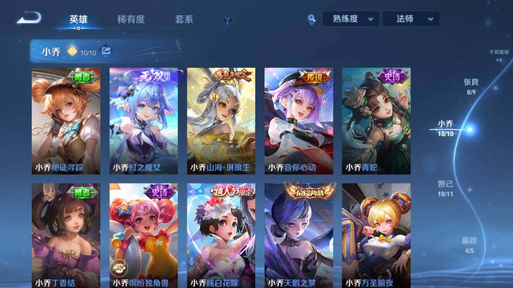 小乔青蛇,大乔白蛇,娜可露露晚萤,伽罗箭羽风息,李元芳逐浪之夏,不知火舞魅语,公孙离无限星赏官,大乔猫狗日记,孙策猫狗日记,阿轲节奏热浪,露娜紫霞仙子,诸葛亮黄金分割率,王昭君偶像歌手,韩信白龙吟,项羽苍穹之光,孙尚香时之恋人,阿轲暗夜猫娘,雅典娜冰冠公主,吕布末日机甲,鲁班七号电玩小子,蒙犽龙鼓争鸣,橘右京修罗,墨子龙骑士,嬴政摇滚巨星,刘禅绅士熊喵,刘禅天才门将,白起星夜王子,安琪拉心灵骇客,安琪拉时之奇旅,程咬金功夫厨神,刘邦德古拉伯爵,兰陵王暗隐猎兽者,曹操幽灵船长,宫本武藏鬼剑武藏,司马懿暗渊魔法,亚瑟心灵战警,钟馗乐园奇幻夜,杨戬天秀·启明,蔡文姬舞动绿茵,廉颇地狱岩魂,西施诗语江南,小乔缤纷独角兽,夏侯惇乘风破浪,花木兰水晶猎龙者,铠曙光守护者,百里玄策热力回旋,墨子金属风暴,百里玄策原初追逐者,吕布圣诞狂欢,貂蝉圣诞恋歌,百里守约特工魅影,嬴政暗夜贵公子,嫦娥拒霜思,雅典娜黎明之约,李白千年之狐,哪吒雪上飞焰,夏洛特永昼,澜赏金猎手,艾琳奇遇舞章,貂蝉唤灵魅影,高渐离天秀·音浪,张良千筹问战,庄周天秀·幻梦,弈星滕王阁序,阿古朵顽趣,镜玫瑰异探,杨玉环银翎春语,刘备百相守梦,关羽百相守梦,沈梦溪匿光破解者,刘禅电玩·爆裂旋风,海月浮梦罗烟,百里守约真我赫兹,赵怀真鹤归松栖,莱西奥末日机甲,李元芳匿光侦查者,姜子牙闲日渔趣,蒙犽百解令,周瑜雪夜绮愿,高渐离燃音魔法,伽罗琥珀纪元,安琪拉乘龙·聚宝船,曹操夜都魔契,桑启奇遇星旅,关羽决胜骁骑,李白谪仙醉月,赵怀真器灵·浮梦炉,亚连糖绘人间,苍狼魂孤将,狄仁杰绮世丹青