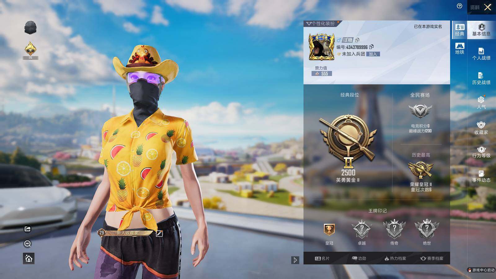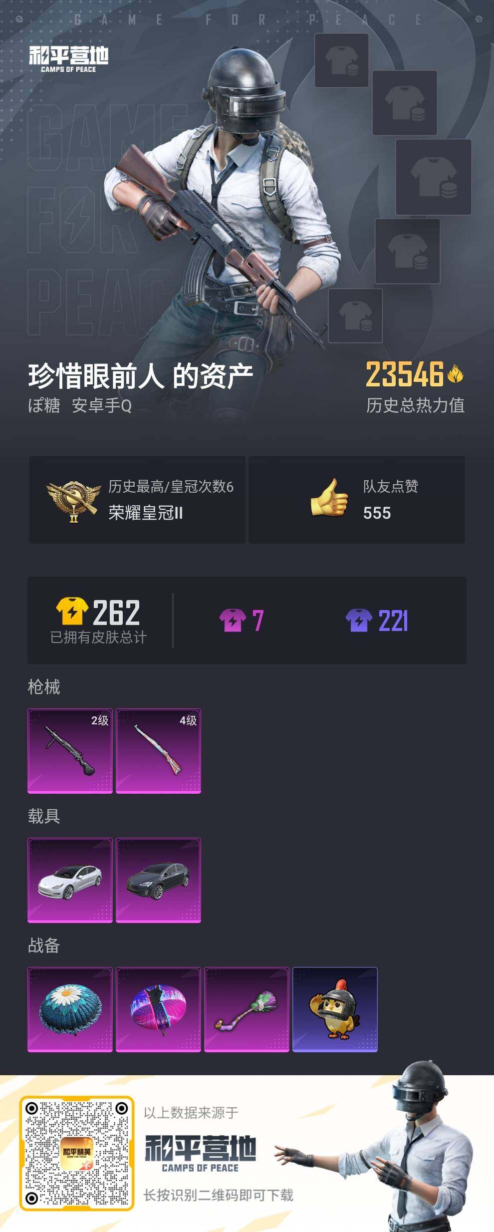 - PX_2080740- 安卓手Q-8王牌印记-3粉装-3特效枪-1载具-28045热力值-71套装-95枪皮-0卓越印记-0传奇印记 【3粉装】,智耀战神,恐龙拽拽,萌物绒绒 【3特效枪】AKM-绿萝繁花-5级 M416-电玩时刻-5级 Kar98K-巳巳如意-5级 【1稀有紫装】,龟仙人, 【1稀有载具】,宾利飞驰(布罗德盖棕双色), 【71稀有时装】,SS31特训,SS33特训,SS32特训