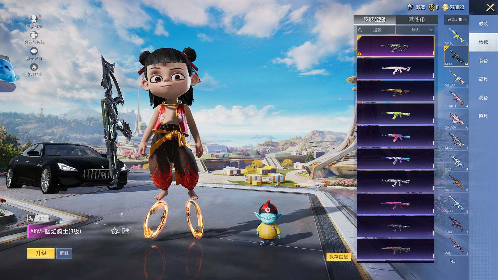 AKM-幽焰骑士,GROZA-旋转彩虹,P90-沙丘之主,Kar98K-巳巳如意