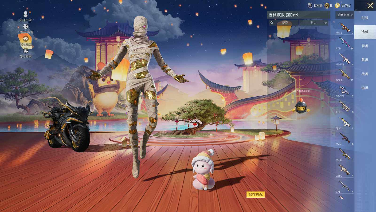 AKM-梦之光华,SCAR-L-金蛇镇世,M416-至情至圣,M416-墨龙九天,GROZA-圣辉之星,AUG-许七安,P90-沙丘之主,Kar98K-创世·救赎,Kar98K-巳巳如意,Kar98K-圣域龙灵,M24-镜域双华,Mk14-盛世惊鸿,SVD-月影灵韵