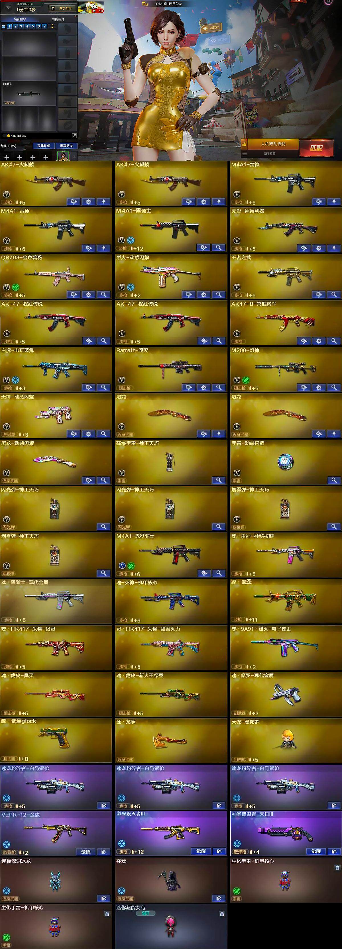 - [12941734]AK3654英雄角色数-150英雄武器数 【王者系列】:王者之蝶,王者之狱 【热门武器】:KSG-孟获,81式-阿波罗,CZS2-仲康 【角色】:审判者,葵,炽天使-X,零-新生 【英雄武器】:AK47-火麒麟*2,AK47-猩红传说,AK47-燎天净火,AK47-血武士,AK47-黑鲨,AK47-木兰,AK47-雅韵青花,AK47-塔罗牌觉醒,AK47-谜城烟火,M4A1-雷神,M4A1-死神*2,M4A1-龙血,M4A1-机械迷城,M4A1-海骑士,M4A1-冰锋觉醒,M4A1-猎神,M4A1-太白诗仙,SCAR Light-白虎,SCAR-探星者,SCAR-心动PICK,AN94-赳赳秦师,AUG-机械纪元,9A91-魔蜥觉醒*2,M14EBR-拂影,M14EBR-葫芦山庄,QBZ03-金色蔷薇,QBZ03-死神*2,QBZ03-玉面羞花,HK416-极光,QBZ19-天使,QBZ97-浩瀚征途,QBZ191-封神榜,AWM-裁决,AWM-天使,AWM-指南针觉醒,巴雷特-毁灭*3,巴雷特-极光*2,巴雷特-朱雀,M200-心动次元觉醒,09式狙-天神,98K-黑骑士,98K-星神,MR1-幽暗骑士,VSK-94-九黎兵主觉醒,加特林-堡垒*3,加特林-蟒蛇*2,QBB95-极光,QBB95-再战涿鹿,汤姆逊-烈龙*3,双持斯泰尔-天使,CBJ-MS-毒蜂*2,CZS2-仲康,DDM4-PDW-星际宇航觉醒,地狱火,嗜血金鲨,地狱烈炎,AA12-火药,KSG-孟获,Origin12-机变奇蛇觉醒,USP-神罚,USP-机械迷城,USP-仁德,沙鹰-修罗*4,沙鹰-神兵修罗,沙鹰-宇航兔兔,双持沙鹰-元让,蚩尤战弓觉醒,改装GLOCK-木兰,蟒蛇-鼓龙,左轮-卧龙觉醒,双持GLOCK18-本初,GLOCK18-猎神,QSZ92-天使,柯尔特-仲达,CZ75-策,掠夺者P365-虹舞,蝴蝶刀-天神,炽芒蝶刃,匕首-浩瀚征途,血阳,手斧-机械迷城*2,气勇胆烈戟,屠龙*4,血月,穷奇铁扇,唐刀-大唐荣耀,擎天