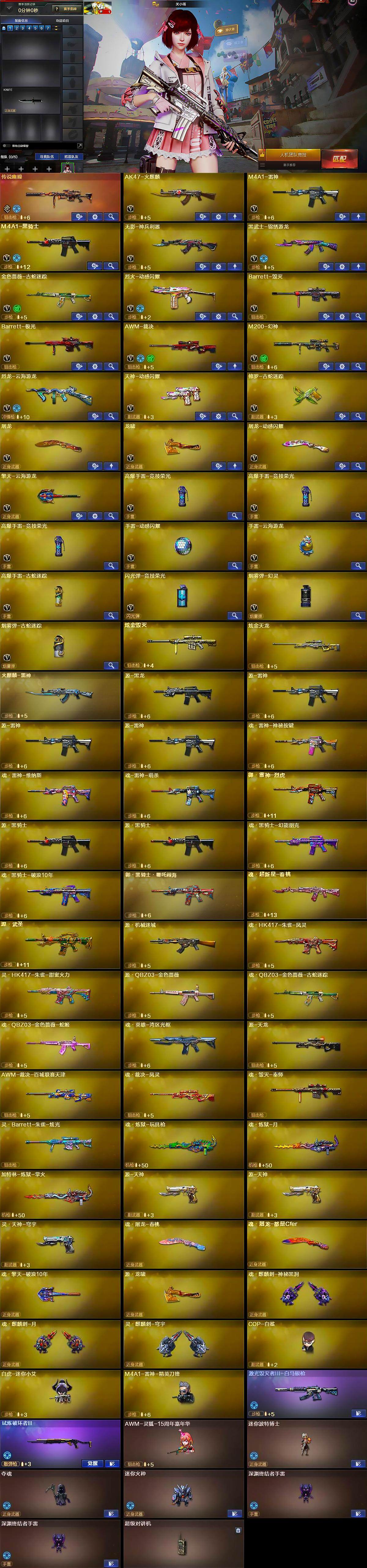 【人偶武器】:COP-白鲨,白虎-迷你小艾,M4A1-雷神-精英刀锋,AWM-灵狐-15周年嘉年华,迷你波特博士,夺魂,迷你火种,深渊终结者手雷*2