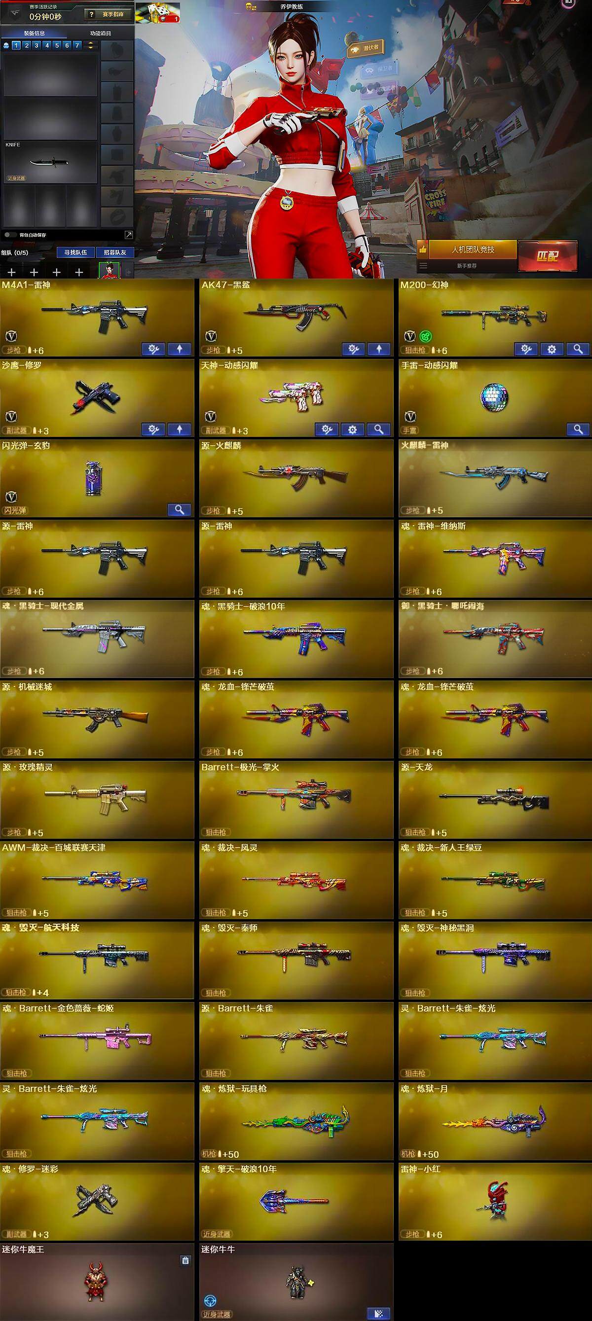- [11881563]9粉装 3特效枪 2载具 4印记 可二次 可修改实名 女号 优质装备:仰望U9(赤霞丹朱),永恒黄蜂,梦幻火箭(新101)(新火箭少女101粉色套装),时空协奏·和音,时空协奏·心弦,时空协奏·回响,SCAR-L-时空协奏,伏羲圣卦,萨利娅,罗征,Kar98K-巳巳如意 热门装扮:寒光使者,猩猩队长,神秘黑猫 稀有枪皮:DP-28-豹影疾电 五级特效枪:五级Kar98K-巳巳如意,五级DP-28-豹影疾电 三级特效枪:三级SCAR-L-时空协奏 紫色装扮:SS31特训套装,伏击者,冷焰舞者,北国孤狼,千禧之恋,SS30特训套装,SS33特训套装,青涩时光,吉莉礼服,酒红色名流,酷萌兔限定,长空猛禽,霓虹街区,缤纷果语,蓝色运动,绛羽幽主,骑行爱好者,魅力单车,黄色名流,黑色伏地魔,龙的传人,香桃花海,柠萌假日,深蓝色名流,湖蓝色名流,疯狂小兔子,登山爱好者,空岛之星,灼焰舞者,燃烧卡路里,猛禽,猎鹰,鱼渊荷华,燕燕于飞,巳巳如意,炽纹蛇影,海琴烟,青团波波,糖糖葫芦,竞技名士,临安公主,深海梦境,惊鸿侠骨,SS25特训,金戈铁马,锦衣飞扬,SS27特训,无暇誓言,SS26特训,春光漫游,快闪甜心,智谋强哥,星渊小夜曲,抹茶蜜豆,SS32特训服(SS32特训套装),青玉碎影,绯格组合,恋语绒绒,金耀舞者 优质战备:繁龙极客飞行器,临安公主降落伞,旋转彩虹降落伞,第五大道降落伞