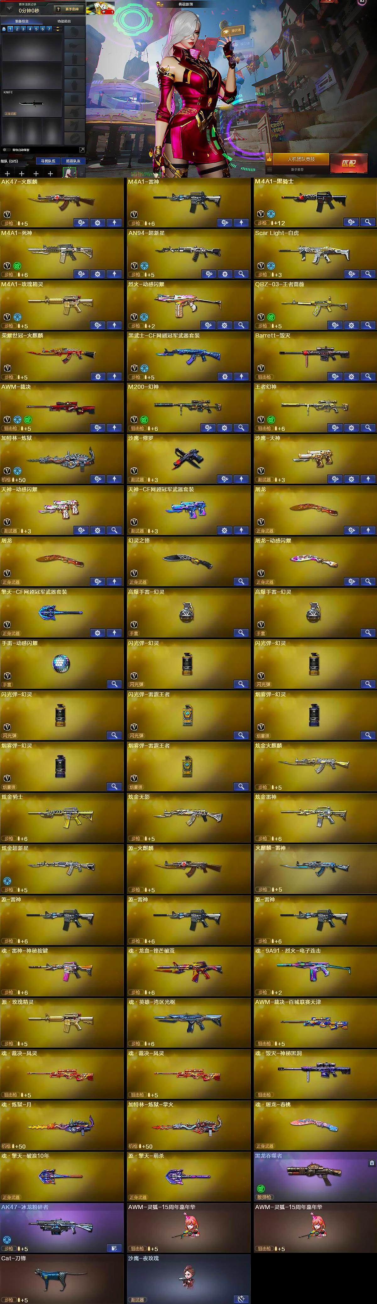 【皮肤】:幻神-周瑜皮肤,幻神-AG-CFPL S24冠军 皮肤,雷神-虎将,雷神-耀金皮肤,火麒麟-雷神,火麒麟-华夏之心,火麒麟-心动糖果,毁灭耀金皮肤,M4A1-千变-孔明皮肤,黑骑士耀金皮肤,AK47-黑武士-361,AWM-天龙-传奇白鲨