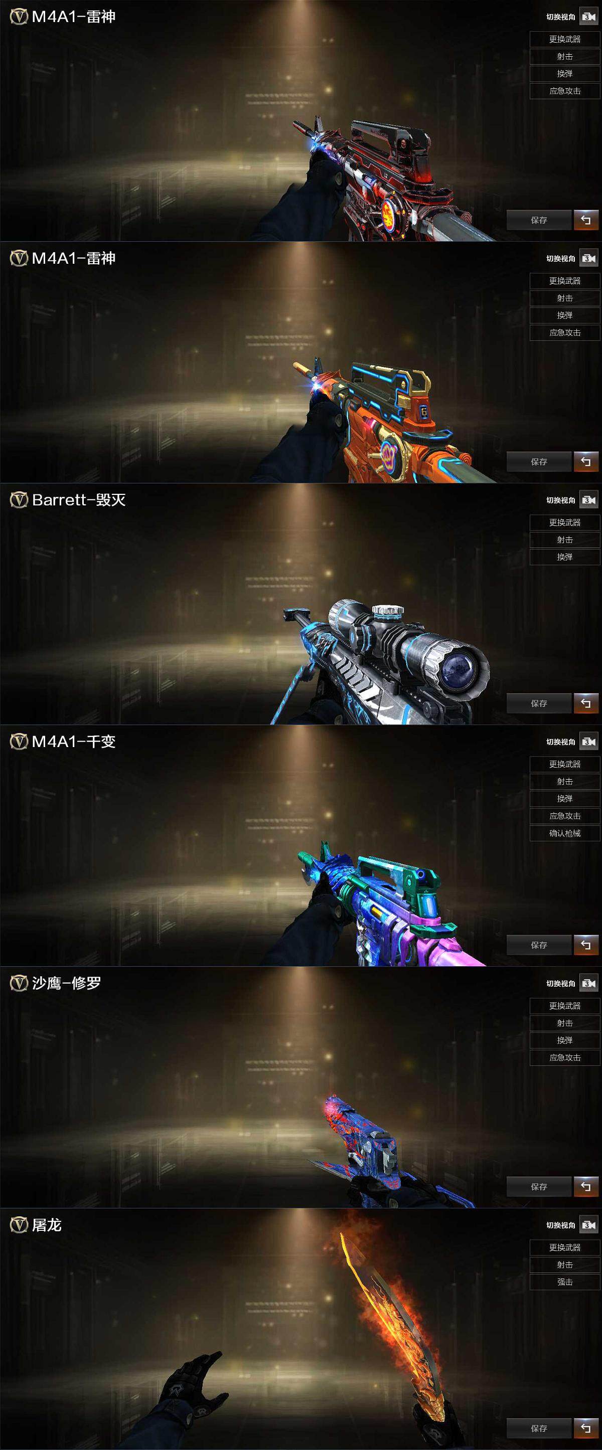 【英雄级武器】:AK47-麒麟,M4A1-雷神,M4A1-死神,AK47-黑武士,AK47-机械迷城,黑武士-锦绣游龙,QBZ03-金色蔷薇,AWM-裁决,汤姆逊-烈龙,沙鹰-修罗,沙鹰-天神*2,屠龙*2,龙啸,麒麟刺-堕天神,擎天,麒麟刺,擎天-竞技荣光,高爆手雷-堕天神,高爆手雷-竞技荣光,闪光弹-堕天神,闪光弹-竞技荣光,烟雾弹-堕天神,烟雾弹-竞技荣光*2,Barrett-碧霄极光