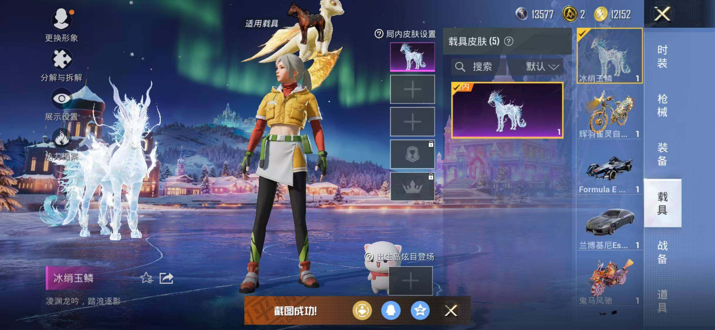 【粉色载具】:兰博基尼Estoque(银翼灰),Formula E Gen2(幽光蓝),鬼马风驰,僚机-圣域龙宝,冰绡玉鳞,辉羽雀灵自行车