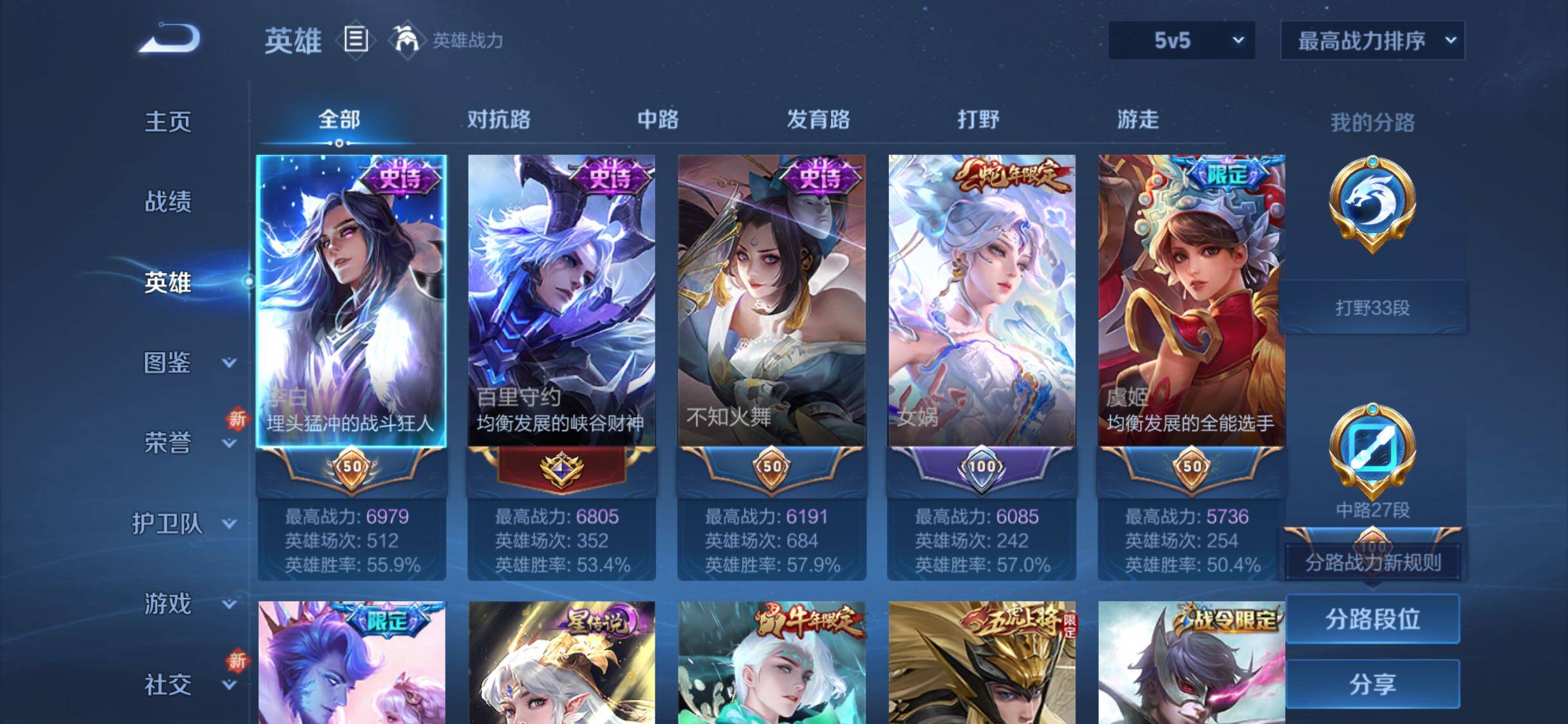 - PX_2095048-实名: 可修改 贵族等级: V5 英雄数: 63 皮肤数: 43 传说皮: 典韦战鼓燎原