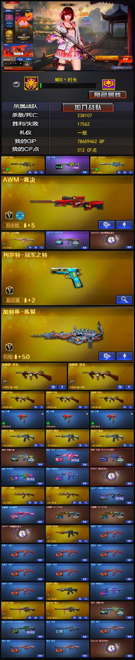 【热门武器】:QBZ03-金色蔷薇,M200-幻神,M200-竞技荣光,死亡之眼*3,柯尔特-冠军之特,M4A1-黑骑士,汤姆逊-烈龙*5,加特林-炼狱,沙鹰-修罗*4