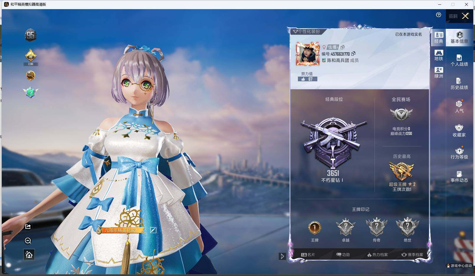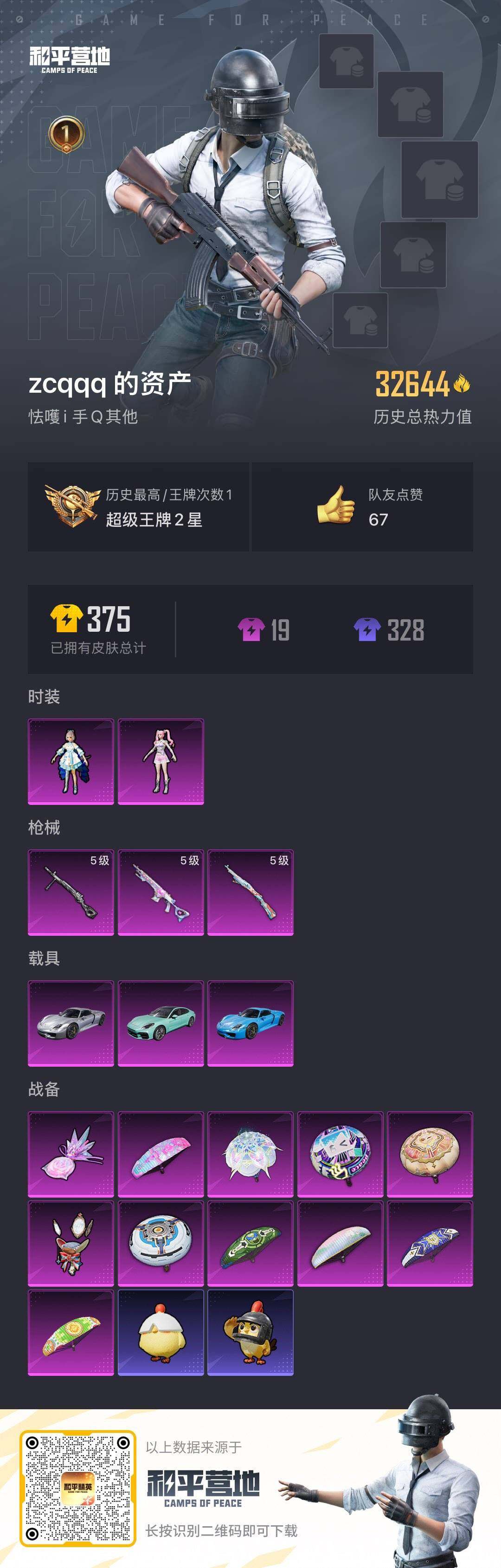 - PX_2101602-?/枪械3/装备125/战备79/王牌印记5/热力值33579/五级SCAR-L-锦绣绵绵/五级AUG-暖羊咩咩/五级Kar98K-巳巳如意/冰霜白皇/山涧鹿灵/冰川粉黛/萌物绒绒/莲影清波/套装-龟仙人/套装-巳巳如意/套装-雏菊兔兔/套装-萝兰蝴蝶/角色-光矢逐梦/套装-蜜露汐语/SCAR-L-锦绣绵绵/AUG-暖羊咩咩/Kar98K-巳巳如意/AKM-影袭/AKM-春暖