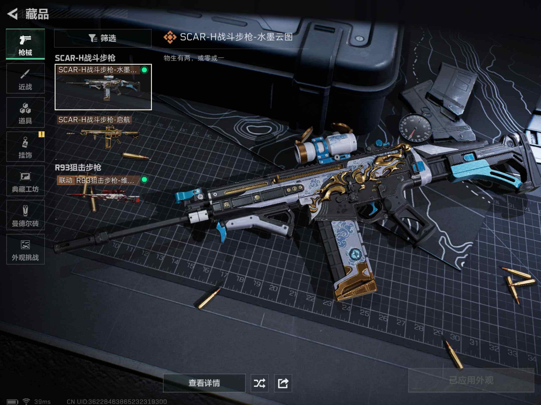 【传说级普通外观】:SCAR-H战斗步枪-水墨云图,SCAR-H战斗步枪-启航,R93狙击步枪-维什戴尔