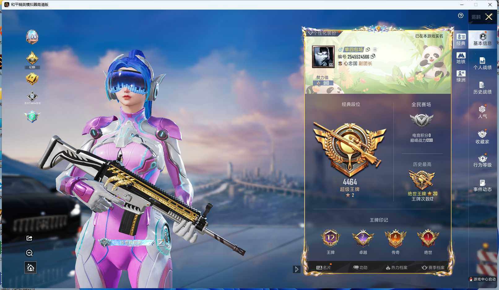 - PX_2062100-实名: 可修改 贵族等级: V4 英雄数: 76 皮肤数: 58 传说皮: 无双飞将,幻光神枪 限定皮: 鸣野蒿