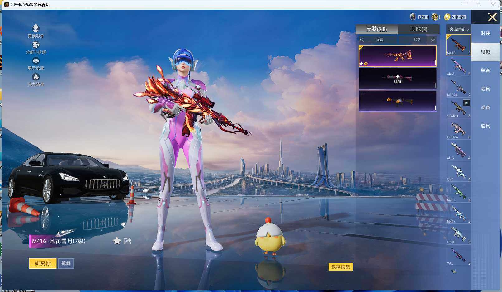 AKM-星际浪客,M416-风花雪月,GROZA-镜光银凌,M762-青锋波束,UMP45-量子极限,Kar98K-巳巳如意,S12K-海渊国主