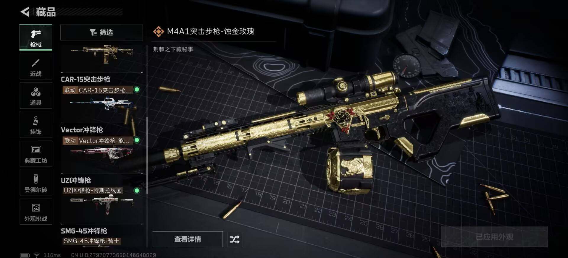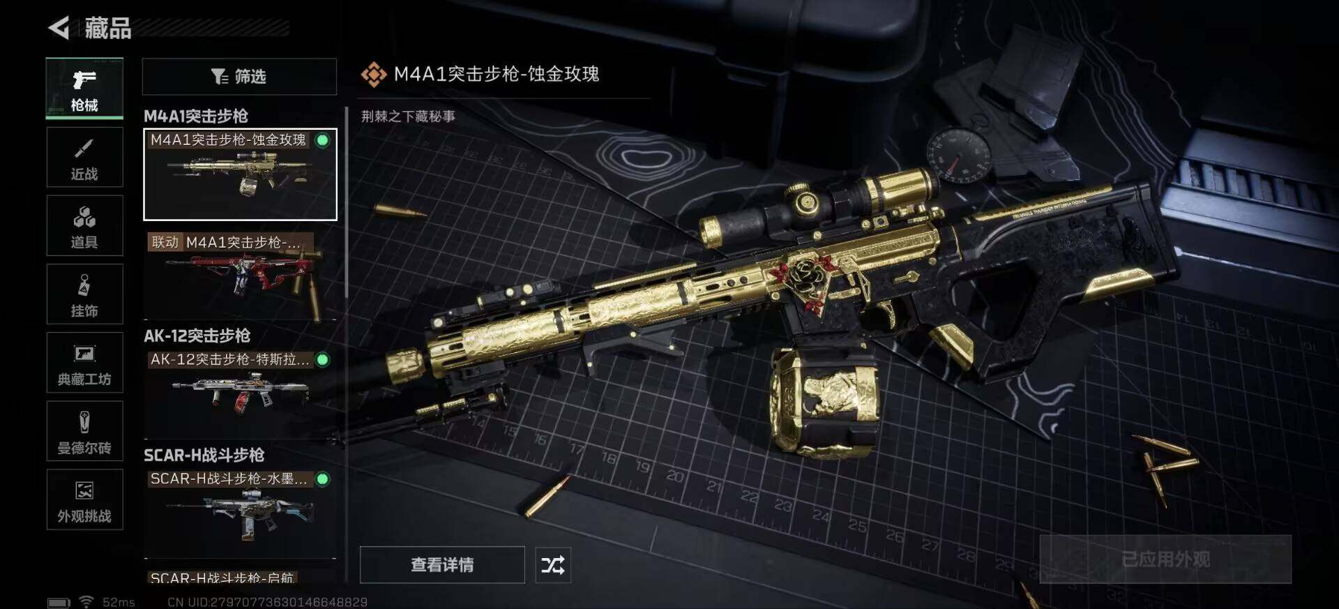 【普通级普通外观】:M4A1突击步枪-粉色涂装,M4A1突击步枪-高雅黑,M4A1突击步枪-海色,QBZ95-1突击步枪-高雅黑,QBZ95-1突击步枪-海浪,QBZ95-1突击步枪-海色,QBZ191突击步枪-三角洲力量,K416突击步枪-几何迷彩,K416突击步枪-高雅黑,M16A4突击步枪-山林猎人,AUG突击步枪-浅蓝涂装,SG552突击步枪-浅蓝涂装,SG552突击步枪-海浪,AK-12突击步枪-落花,SCAR-H战斗步枪-红色涂装,SCAR-H战斗步枪-数码迷彩,G3战斗步枪-高雅黑,PTR-32突击步枪-黄蜂,MP5冲锋枪-海色,MP5冲锋枪-黄蜂,Vector冲锋枪-几何迷彩,UZI冲锋枪-海色,M1014霰弹枪-高雅黑,M1014霰弹枪-海浪,PKM通用机枪-