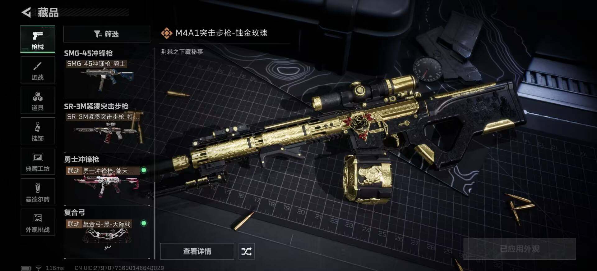【传说级普通外观】:M4A1突击步枪-蚀金玫瑰,M4A1突击步枪-阿米娅,AK-12突击步枪-特斯拉线圈,SCAR-H战斗步枪-水墨云图,SCAR-H战斗步枪-启航,CAR-15突击步枪-阿米娅,Vector冲锋枪-能天使-午夜邮差,UZI冲锋枪-特斯拉线圈,SMG-45冲锋枪-骑士,SR-3M紧凑突击步枪-特斯拉线圈,勇士冲锋枪-能天使-午夜邮差,复合弓-黑·天际线