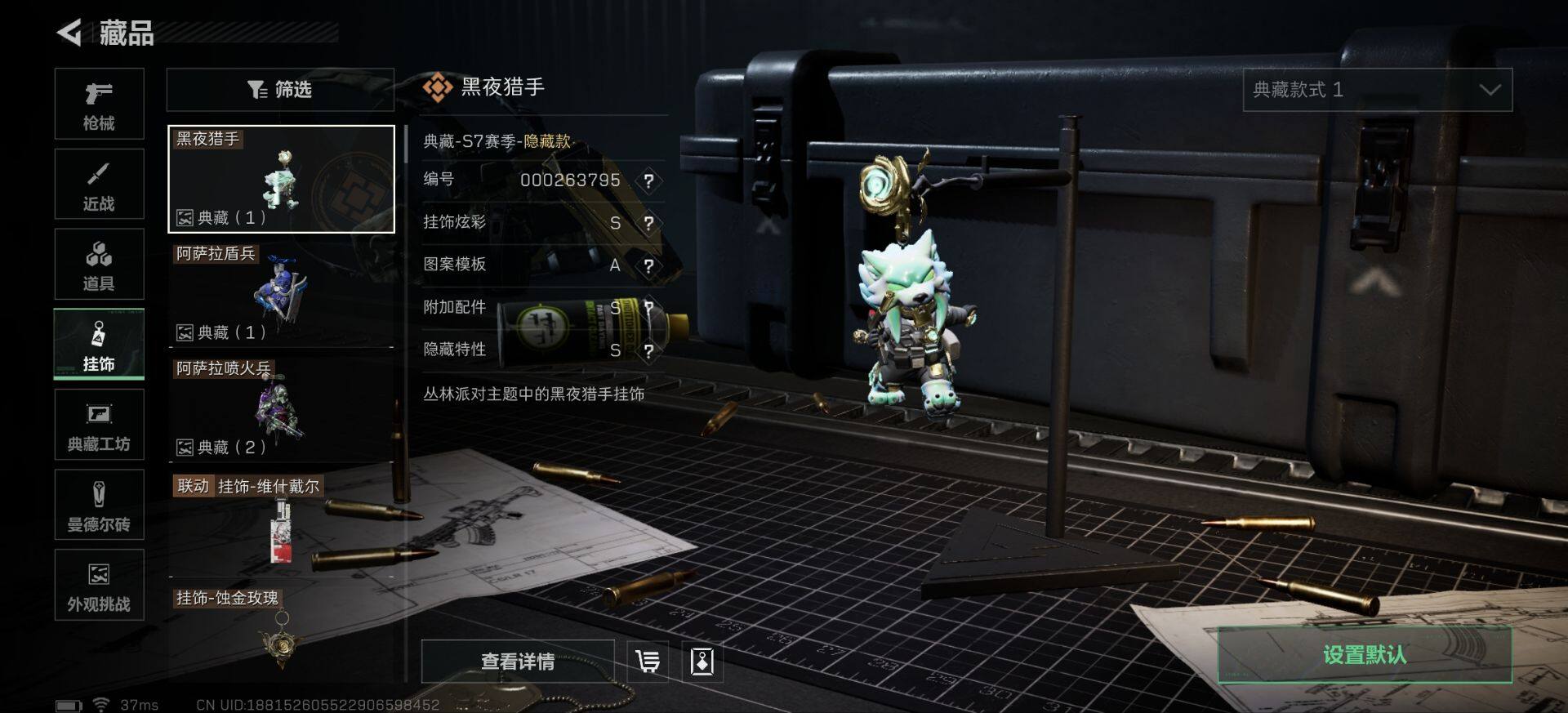 - [11834384]总资产:294.8M 6干员外观 1近战传说 15传说枪械 哈夫币:155K 可二次 可修改实名安全保护中 优质装备:近战-北极星,顶级安全箱(3x3),非洲之心 烽火地带段位:三角洲巅峰 全面战场段位:尉官 传说武器皮肤:SR-25射手步枪-水墨云图,SCAR-H战斗步枪-铁艺苍穹,AK-12突击步枪-夜鹰,SMG45冲锋枪-骑士,复合弓-黑-天际线,AWM狙击步枪-捞点薯条,QCQ171冲锋枪-北极星,腾龙突击步枪-捞点薯条,93R-捞点薯条,勇士冲锋枪-能天使-午夜邮差,725双管霰弹枪-送葬人-无题密令,K437突击步枪-北极星,M7战斗步枪-维京,M4A1突击步枪-蚀金玫瑰 史诗武器皮肤:SR-3M紧凑突击步枪-英雄,QBZ95-1突击步枪-ACE,M4A1突击步枪-特勤执行,AUG突击步枪-特勤执行,Vector冲锋枪-红色彗星,PTR-32战斗步枪-ACE,SKS射手步枪-ACE,AUG突击步枪-蝮蛇,PKM通用机枪-蝮蛇,G3战斗步枪-战场英杰,M700狙击步枪-守夜人,Ash-12战斗步枪-守夜人,SR-3M紧凑突击步枪-荒野求生,勇士冲锋枪-深海恐惧,SG552突击步枪-深海恐惧,SVD狙击步枪-荒野求生,M14射手步枪-禁卫,M1014霰弹枪-林中猎手,PSG-1射手步枪-无垢,AS Val突击步枪-典狱官,QCQ171冲锋枪-禁卫,QBZ95-1突击步枪-曙光,UZI冲锋枪-危险实验,M249轻机枪-维京,SCAR-H战斗步枪-危险实验,沙漠之鹰-曙光,Vector冲锋枪-阿萨拉文明,SVD狙击步枪-阿萨拉工艺,S12K霰弹枪-曙光,AS Val突击步枪-刀锋,PKM通用机枪-英雄,M700狙击步枪-竞技风,QSZ92G-风林火山,93R-博士 干员外观:红狼-蚀金玫瑰,牧羊人-街头之王,无名-夜鹰,威龙-飞虎,蜂医-送葬人·无题密令(S5),露娜-黑·天际线