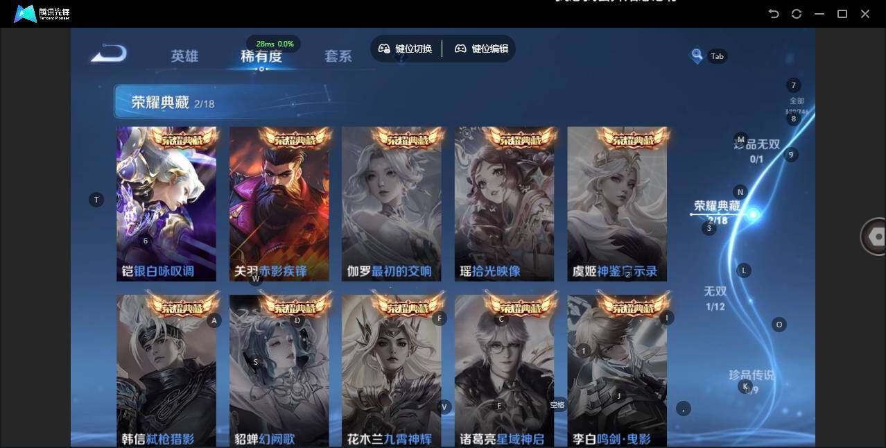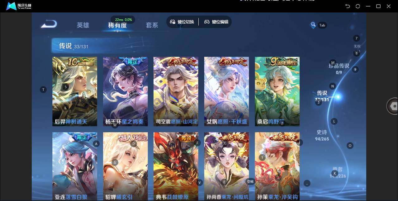 - PX_2056638-42 安卓QQ/永恒钻石/262皮肤/125英雄/1典藏/0珍品无双/0无双/0珍品传说/22传说/59史诗/9稀有英雄 【1 典藏皮肤】弑枪猎影 韩信, 【22 传说皮肤】枫霜尽 橘右京,启明星使 虞姬,云霓雀翎 虞姬,李逍遥 曜,零号·赤焰 孙悟空,夜礼服假面 狄仁杰,地狱之眼 宫本武藏,黄金射手座 后羿,怒海麟威 吕布,久胜战神 干将莫邪,末日机甲 孙尚香,乘龙·淬吴