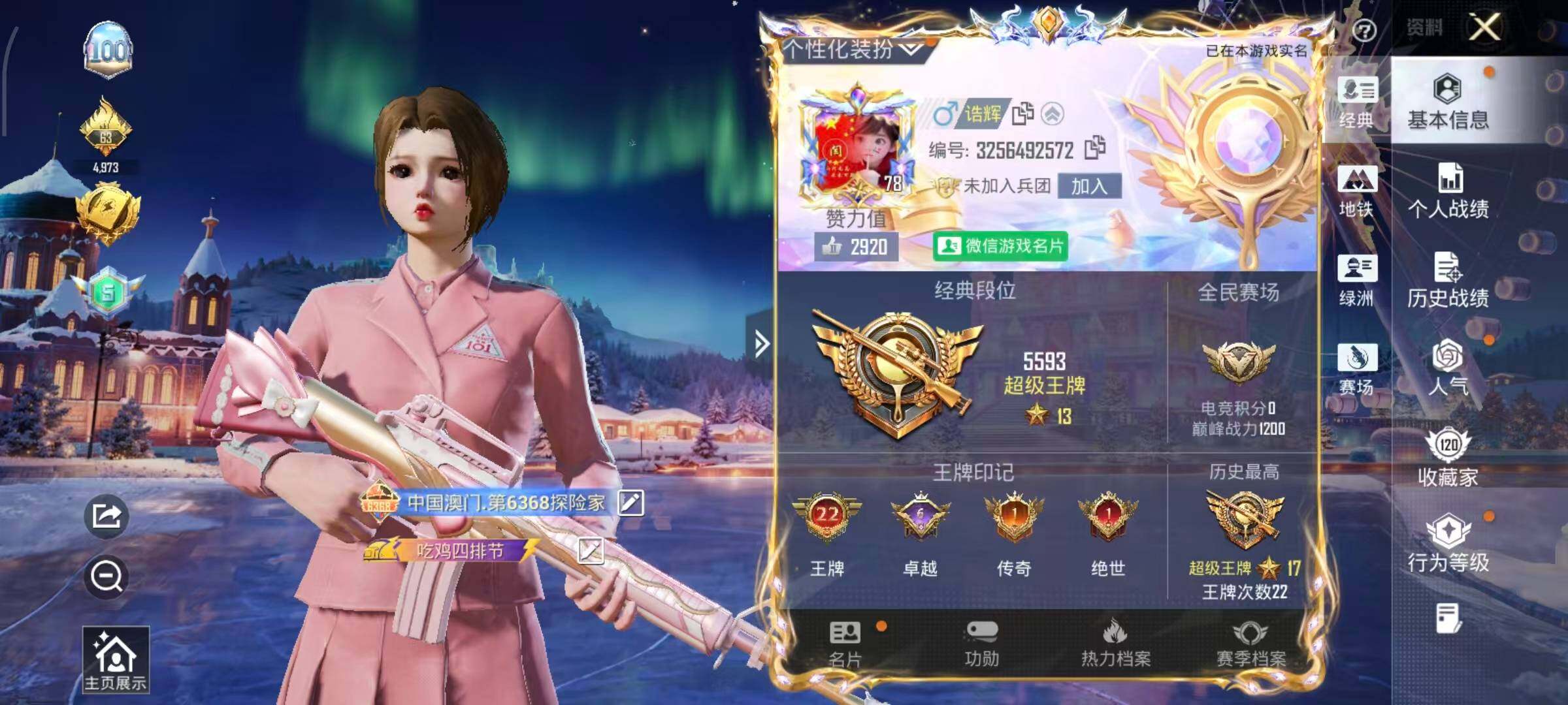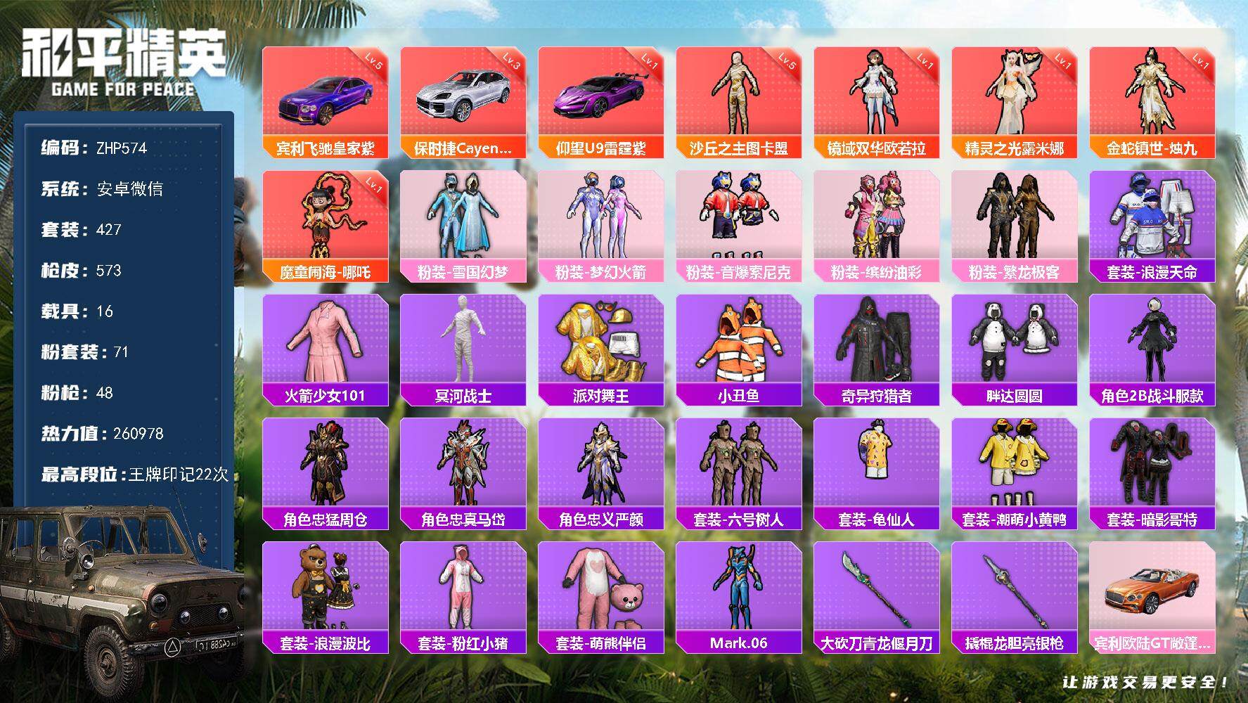[14009644]双字ID锆辉!5级图卡盟!老101!安卓 微信-5神装-71粉装-48特效枪-16载具+1僚机-38粉色飞行器-260978热力值-22王牌印记-427套装-573枪皮