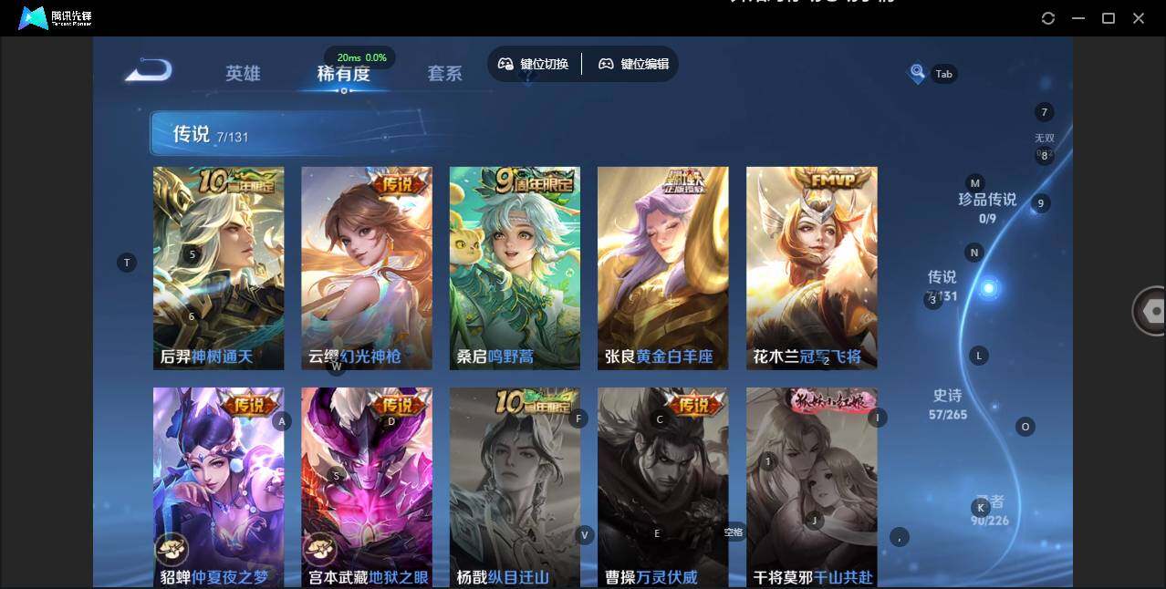 - [12193195]V7 1典藏 1珍品传说 11传说 124英雄 211皮肤 可修改实名 优质装备:神鉴启示录,怪盗基德,冠军飞将,炽阳神光,地狱之眼,飞鸢探春,超时空战士-狄仁杰,涂山容容 传说皮:乘龙·问璇玑(孙尚香年限),吕布曦玄引,幻光神枪 珍宝阁皮:蔷薇恋人 限定皮:愿照·九州拓(澜年限),鸣野蒿,五谷丰年,梁祝,祈雪灵祝(雪兔子),大圣娶亲,引擎之心 史诗皮:鸭鸭历险记-刘禅,器灵·浮梦炉,化蝶舞,星界战将,龙之律动,茶境仙,怒海争锋,破空之剑,战舞者,蒙犽顽岩魄,埋骨钱,琥珀纪元伽罗,蔬乡物语(鲁班七号),百相守梦-黄忠,紫霞仙子,电玩小子(小书包),黄金分割率,特工魅影,江河有灵,真我赫兹(百里守约),蒙恬荣光圣徽,偶像歌手,猫狗日记-孙策,节奏热浪,女仆咖啡,摇滚巨星,水果甜心,绅士熊喵,功夫厨神,暗隐猎兽者,幽灵船长,鬼剑武藏,天秀·启明,缤纷独角兽,逐浪之夏,水晶猎龙者,曙光守护者,箭羽风息,唤灵魅影,原初追逐者,圣诞恋歌,鹰眼统帅,暗夜贵公子,魅力维加斯,黎明之约,无心