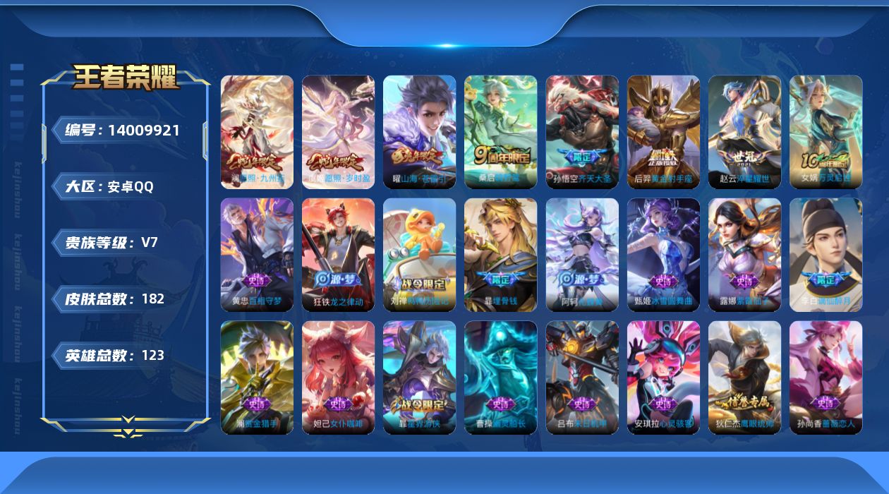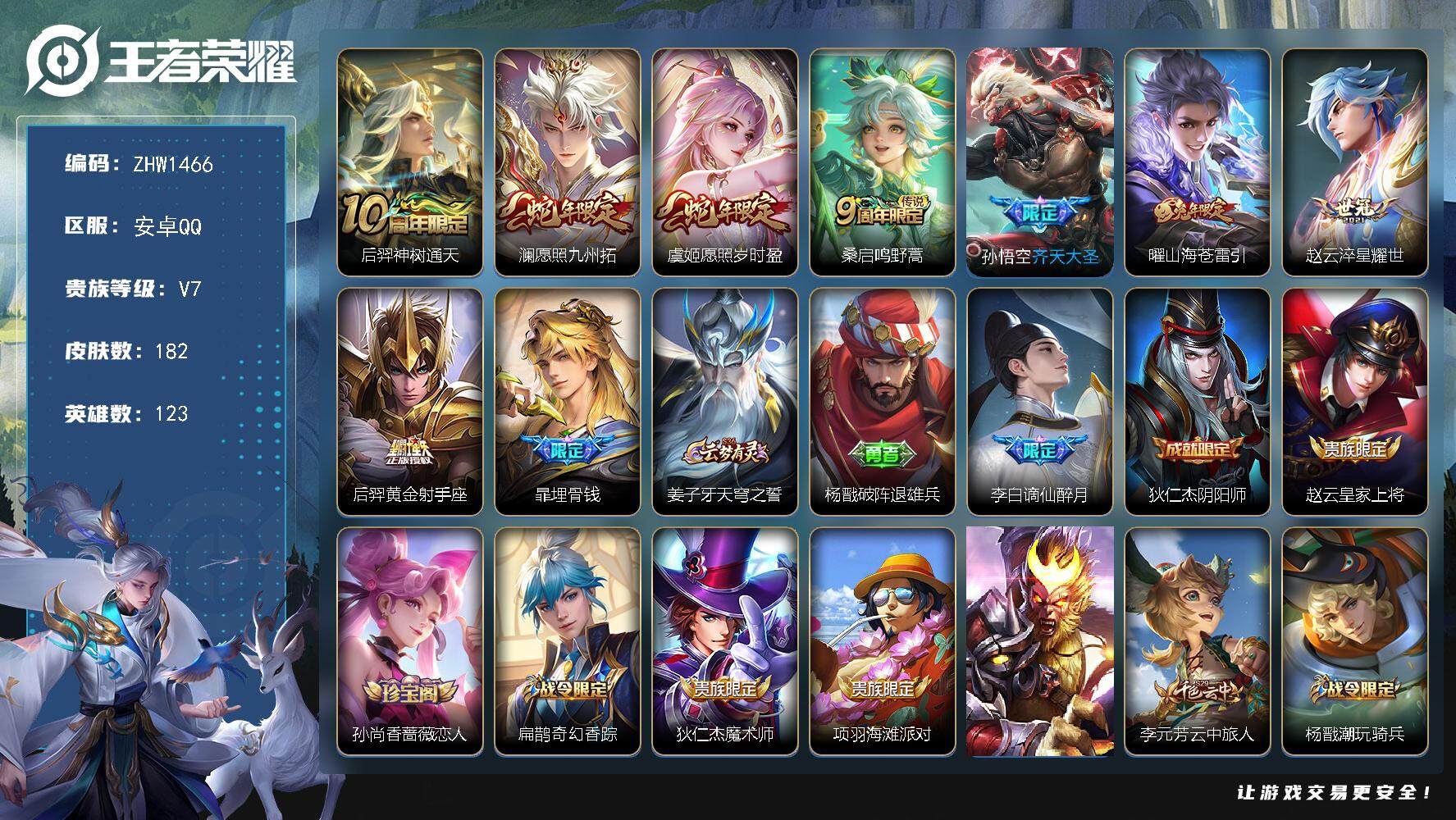 [14009921]可二次 【店主推荐捡漏号!可直接换绑】安卓Q-V7-永恒钻石II段位-123英雄-182皮肤-8传说-41史诗