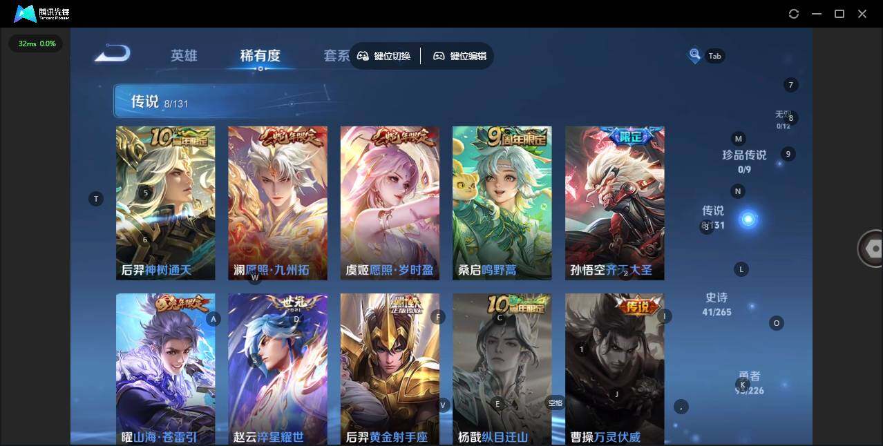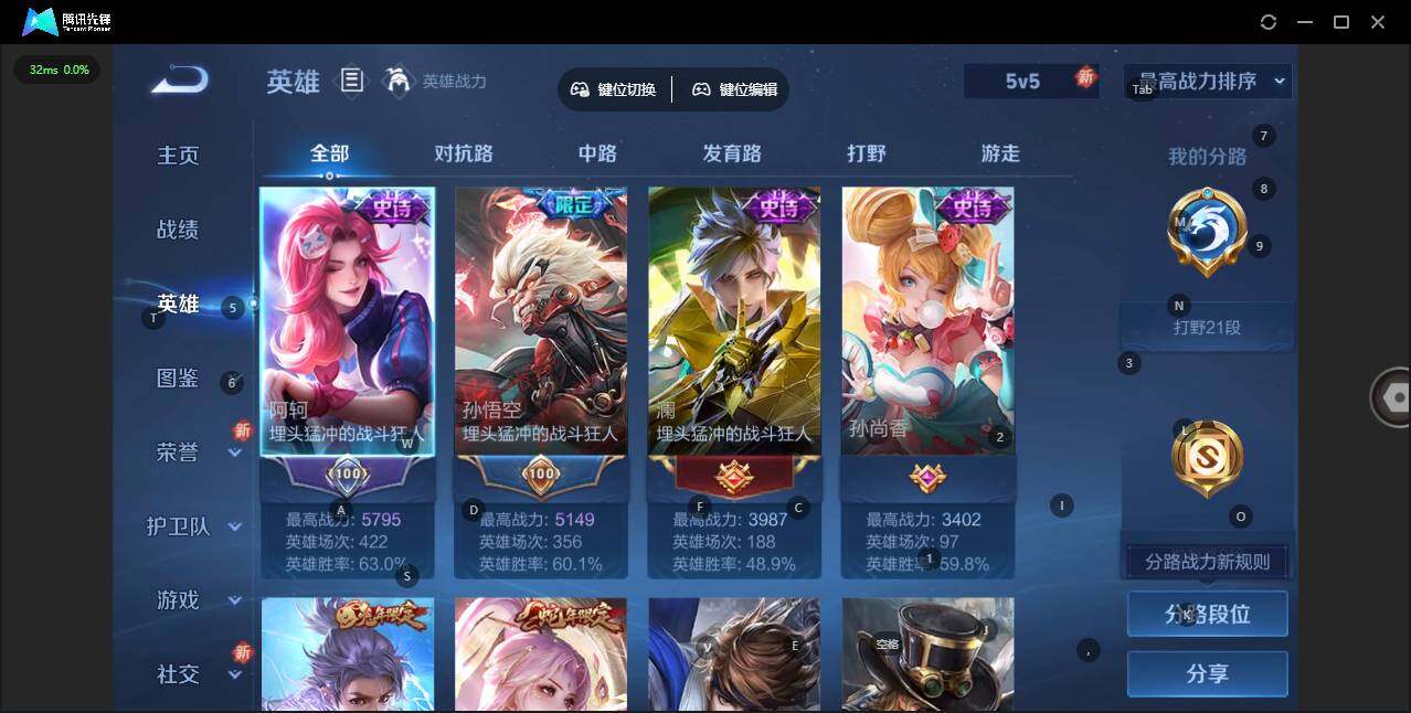 - [11605391]V8 20传说 123英雄 258皮肤 可修改实名 优质装备:绛天战甲(鸡嘴战神),地狱之眼,胖达荣荣,乞巧织情,电玩·雷克斯,鹤归松栖(云缨),惊梅引,澜逐花归海,金乌负日,云中君群星魔术团 传说皮:貂蝉曦玄引,幻光神枪 珍宝阁皮:妄想食味 限定皮:愿照·九州拓(澜年限),愿照·岁时盈(虞姬年限),愿照·众生和(妲己年限),愿照·千秋盛(女娲年限),鸣野蒿,太华(伽罗年限),时之彼端,白晶晶,至美·乘鲤谣,遇见飞天,青龙志(铠年限),岱宗(典韦年限),李小龙,辉光之辰,霸王别姬-虞姬,默契交锋-兰陵王 史诗皮:鸭鸭历险记-刘禅,器灵·浮梦炉,化蝶舞,星界战将,龙之律动,茶境仙,破空之剑,涂山红红,东方月初,埋骨钱,怒海争锋,上官婉儿群星魔术团,蔬乡物语(鲁班七号),百相守梦-黄忠,紫霞仙子,黄金分割率,特工魅影,千年之狐,浮梦罗烟,江河有灵,百解令(蒙犽),高渐离燃音魔法,蒙恬荣光圣徽,偶像歌手,魅语,晚萤,猫狗日记-大乔,节奏热浪,修罗,摇滚巨星,水果甜心,绅士熊喵,心灵骇客,功夫厨神,幽灵船长,鬼剑武藏,心灵战警,地狱岩魂,纤云弄巧,拒霜思,乘风破浪,逐浪之夏,水晶猎龙者,曙光守护者,箭羽风息,金属风暴,圣诞狂欢,鹰眼统帅,魅力维加斯,赏金猎手,滕王阁序,未来纪元-赵云