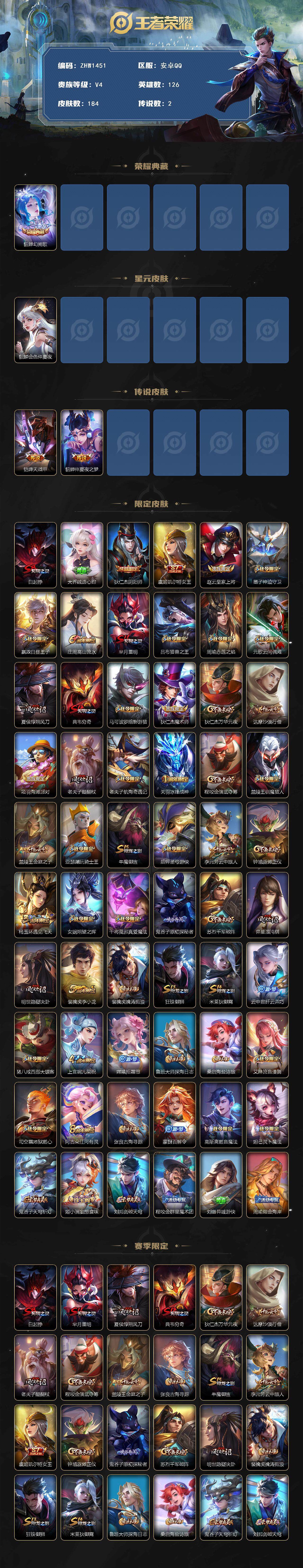 - PX_2091828-苹果Q 【可二次】 英雄数量:125 皮肤数量:175 贵族等级:贵族V8 无双限定1 荣耀典藏1 传说品质23 史诗品质52武则天 碎月剑心 银白咏叹调 诗剑行 挚爱花嫁 海洋之心 一念神魔 云鹰飞将 淬星耀世 山海苍雷引 山海炽霜斩 末日机甲女 浮生妄 燃星之曲 遇见胡旋 飞鸢探春 怒海麟威 碎云 挚爱之约 启明星使 末日机甲孙策 地狱之眼 超时空战士男 逐花归海 乘龙问