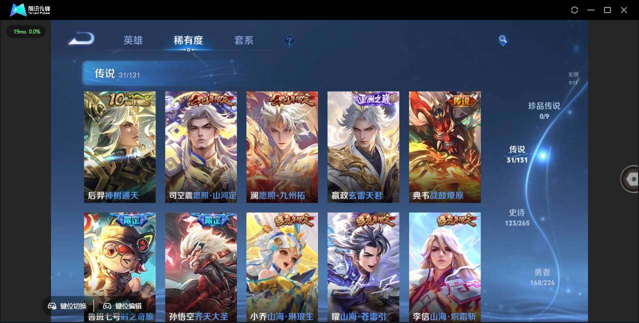- [11651490]V8 1典藏 19传说 120英雄 205皮肤 可修改实名 优质装备:幻阙歌(貂蝉典藏),云鹰飞将(小将军),炽阳神光,一念神魔,云霓雀翎,末日机甲-孙尚香(绿蚂蚱),音你心动-小乔,音你心动-周瑜,时之恋人-刘备(电焊工),游龙清影(小青龙),碎云,山海·炽霜斩(李信年限),燃星之曲,妄想奇谈,惊梅引 珍宝阁皮:优雅恋人,女武神 限定皮:至尊宝,凤求凰(白切鸡),武陵仙君(小桃花),傲雪梅枪,补天,神威(电光马子),遇见飞天,梁祝,逐梦之星,祈雪灵祝(雪兔子),天狼绘梦者,李小龙,如梦令-后羿,神器·万象笔,山海·玄木吟(马可年限) 史诗皮:紫霞仙子,白龙吟,黄金分割率,特工魅影,千年之狐,永昼,江河有灵,魅语,蒙恬荣光圣徽,冰冠公主,偶像歌手,晚萤,龙骑士(小龙虾),末日机甲-吕布,时之恋人-孙尚香,修罗,水果甜心,星夜王子,暗隐猎兽者,鬼剑武藏,纤云弄巧,缤纷独角兽,逐浪之夏,箭羽风息,金属风暴,原初追逐者,圣诞恋歌,鹰眼统帅,魅力维加斯,黎明之约,赏金猎手