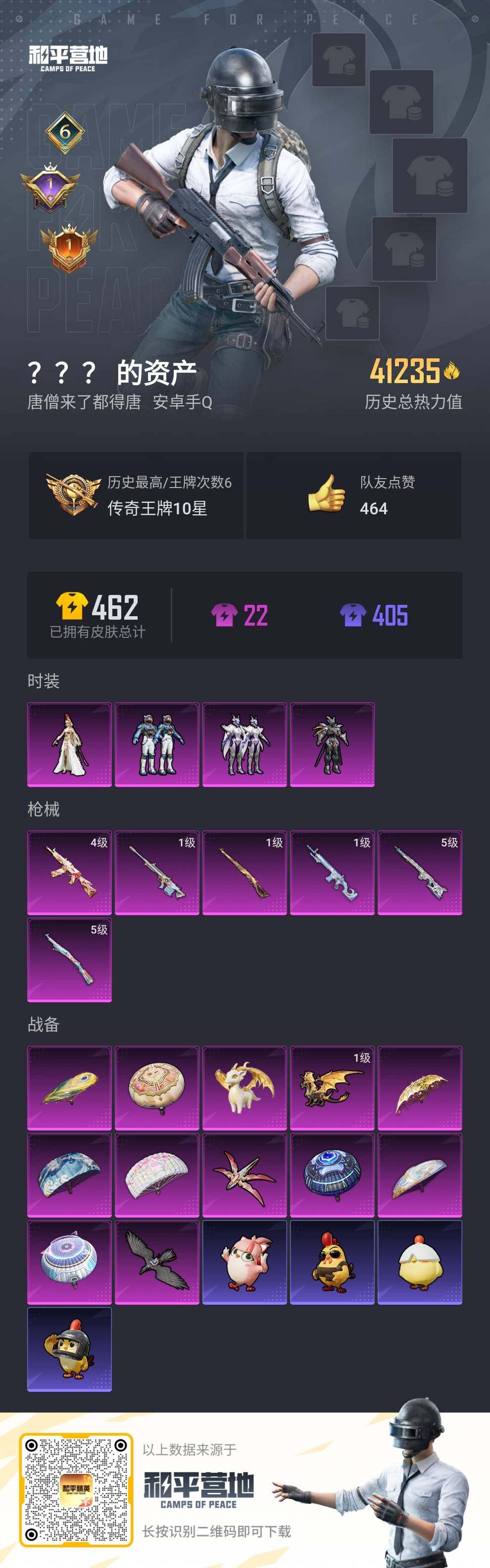 - PX_2088293- 包人脸 苹果手Q-5王牌印记-2粉装-6特效枪-0载具-27021热力值-50套装-88枪皮-2卓越印记-0传奇印记, 【2粉装】,御兔特攻,幻影飞狐, 【6特效枪】,AKM-绿萝繁花-5级,SCAR-L-锦绣绵绵-5级,M416-电玩时刻-5级,GROZA-镜光银凌-5级,AUG-暖羊咩咩-5级,Kar98K-巳巳如意-5级,, 【1稀有紫装】,龟仙人, 【50稀有时装】