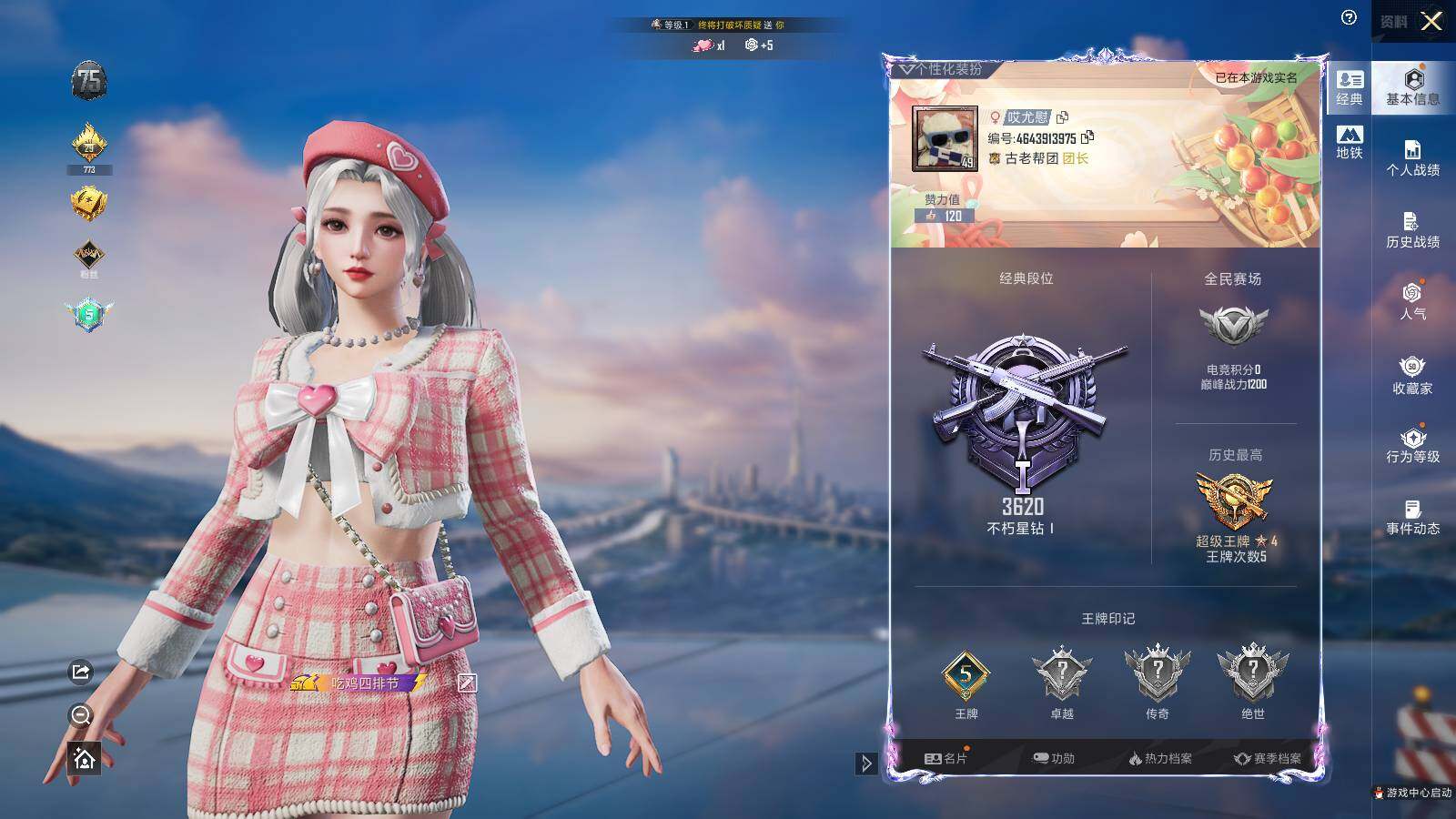 - PX_2090213-0-可二次-安卓Q-29330热力值 3王牌印记 历史超级王牌6星 身法号 灰色兰博 满级死噶锦绣绵绵 深海小丑鱼 狂沙舞者 漫步者 梦幻火箭飞行器 81套装 94枪皮 【1载具】 兰博轿车灰色 【1稀有】 浪漫天命 【2特效枪】 SCAR-L-锦绣绵绵 (5级) Kar98K-巳巳如意 (3级) 【1飞行器】 梦幻火箭飞行器 【11热门】 龟仙人 银碳小老虎 深海小丑鱼
