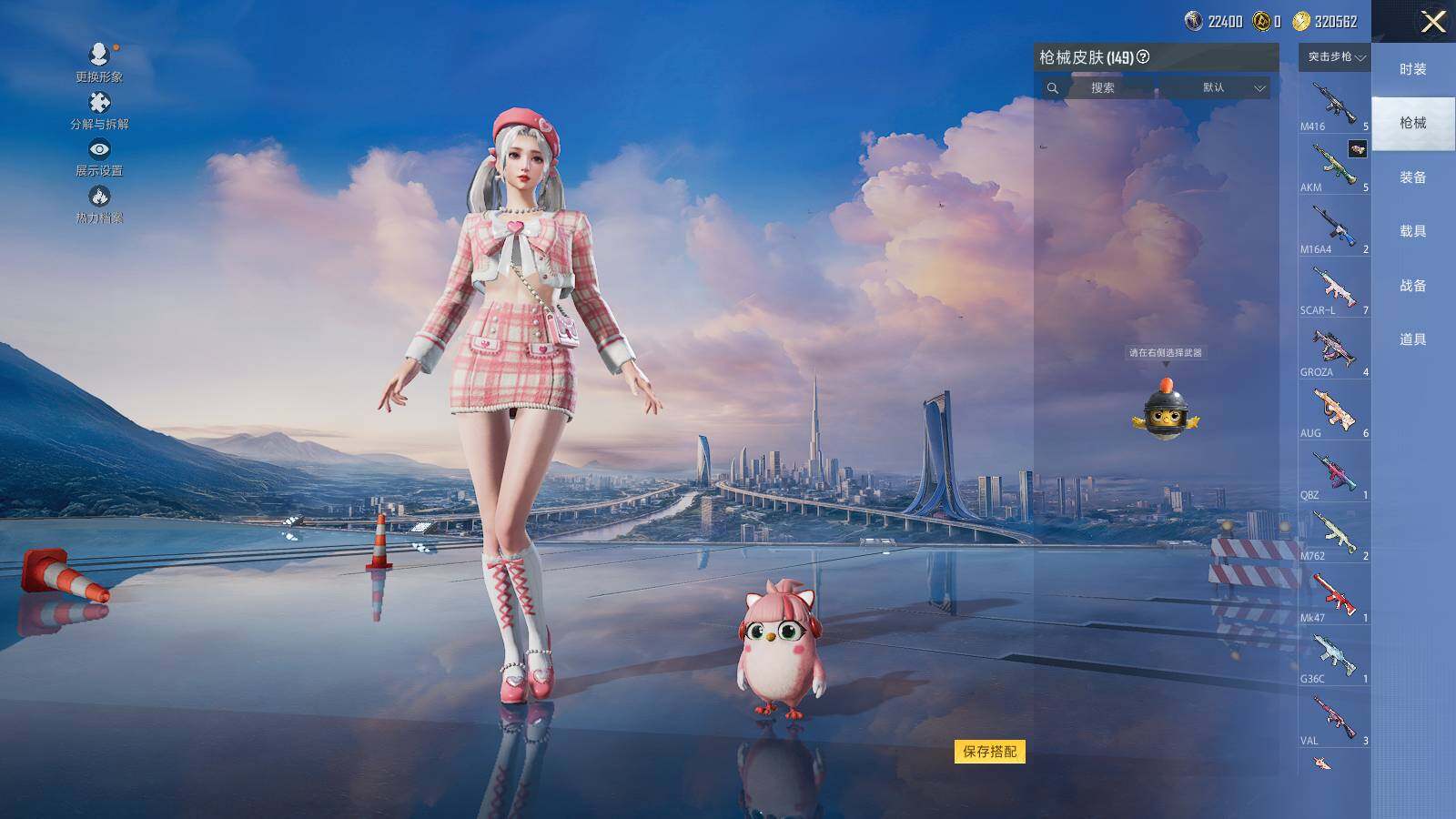 AKM-绿萝繁花,GROZA-镜光银凌,AUG-暖羊咩咩,Kar98K-巳巳如意