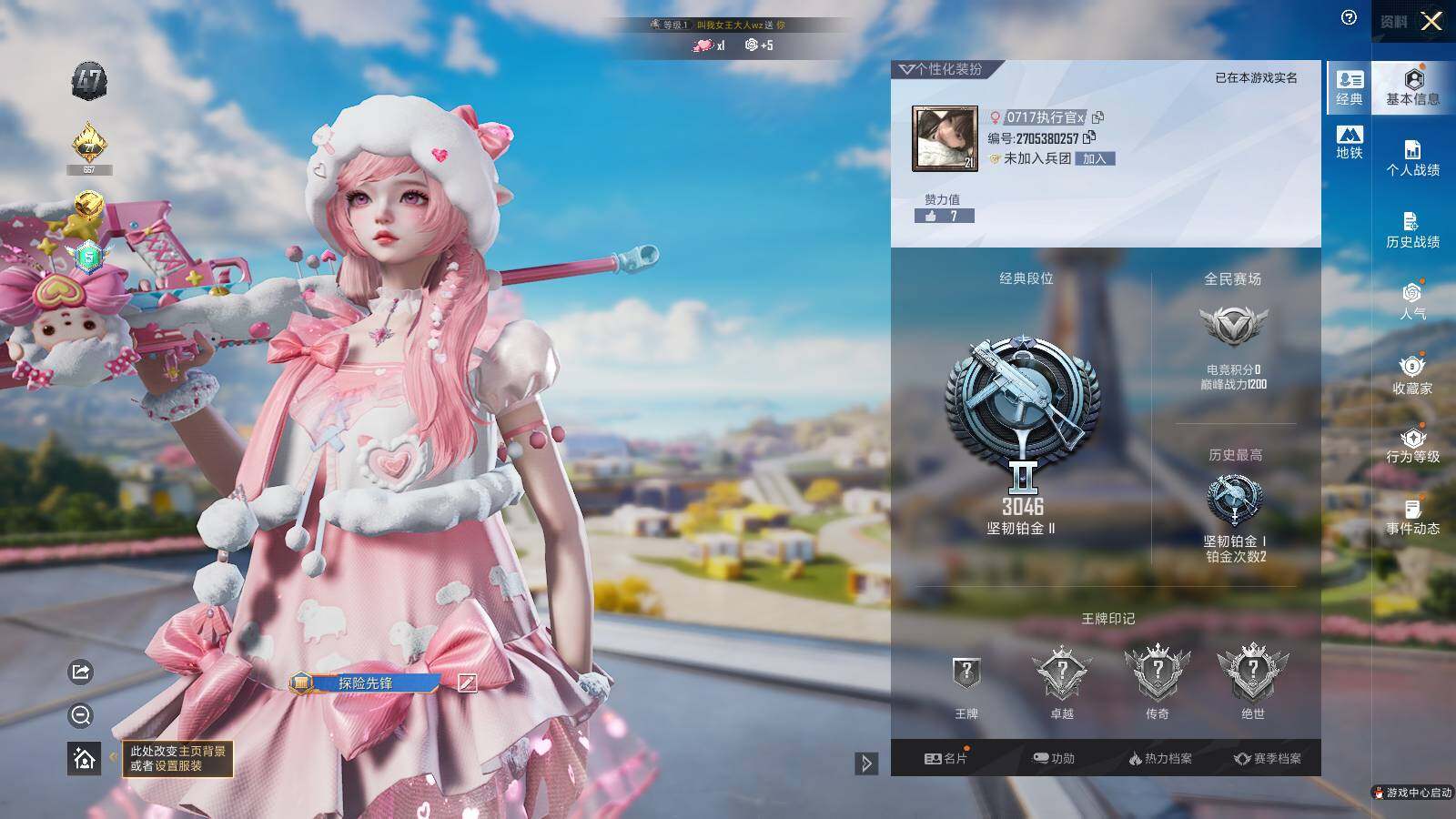 - [11014553]实名: 可修改 时装数: 392 枪械数: 114 战备数: 85 热门装扮: 鹰眼刺客,都市猎人,金丰海韵,时空协奏·心弦 稀有枪皮: SCAR-L-锦绣绵绵,M416电玩时刻,Kar98K-巳巳如意,DP-28-豹影疾电