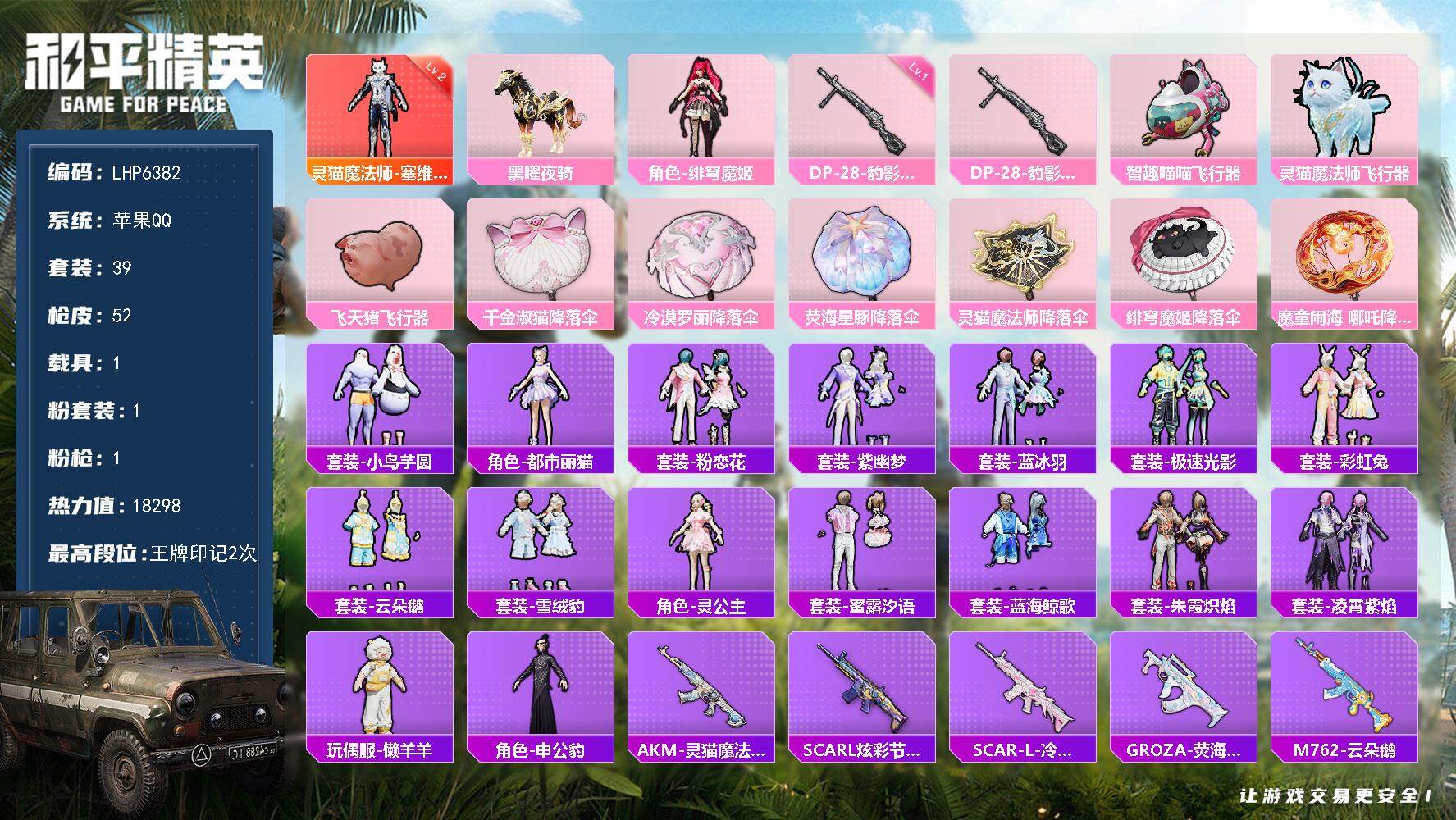 - PX_2094628- 苹果手Q-12王牌印记-3粉装-7特效枪-1载具-53439热力值-113套装-148枪皮-0卓越印记-0传奇印记 【3粉装】,怪诞乔克,闲梦青缨,复仇流浪者 【7特效枪】SCAR-L-青春物语-6级 M416-心之恋语-4级 AUG-暖羊咩咩-5级 Kar98K-创世·救赎-2级 Kar98K-巳巳如意-2级 Kar98K-伏魔团-5级 莫辛纳甘-未来领航者-4级 【5